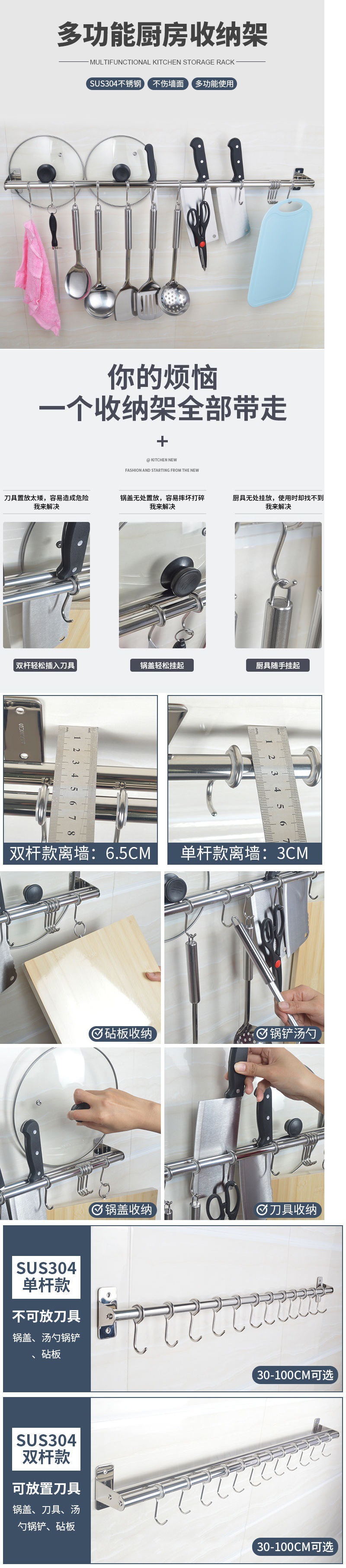 주방 교수형 막대 스테인레스 스틸 후크 펀치가없는 저장 랙 스토리지 랙 후크 독립 역 국경 도매 무료 배송스토어 가기