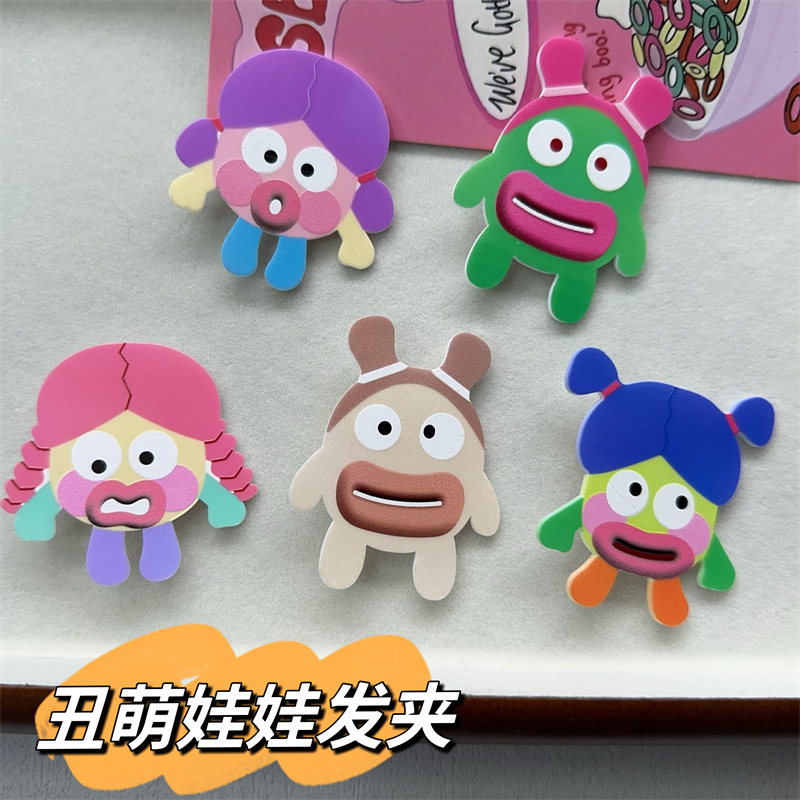 못생긴 귀여운 인형 헤어핀 그로테스크 큰 눈 큰 입 오리 클립 소시지 밀집 머리핀 웃긴 머리 액세서리스토어 가기