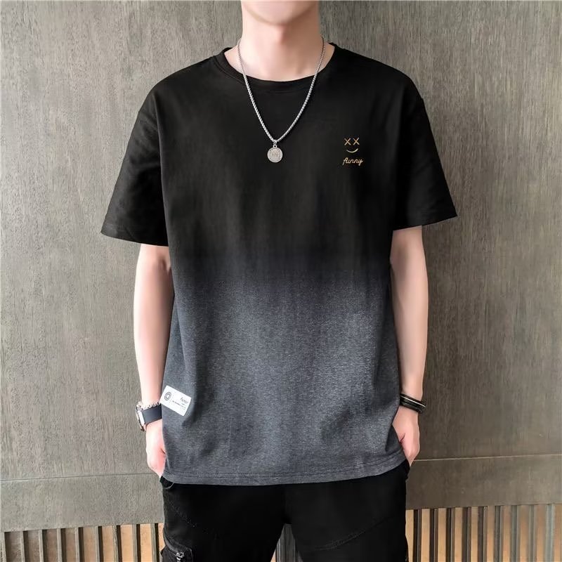 2025 남성 여름 유행 다목적 반팔 티셔츠 그라데이션 옷 느슨한 반팔 남성 탑 트렌디 티셔츠