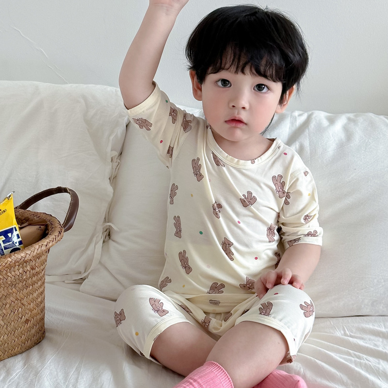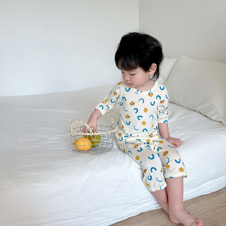 여름 아기 홈 세트 얇은 모달 어린이 잠옷 소년 소녀 통기성 Lyocell 소매스토어 가기