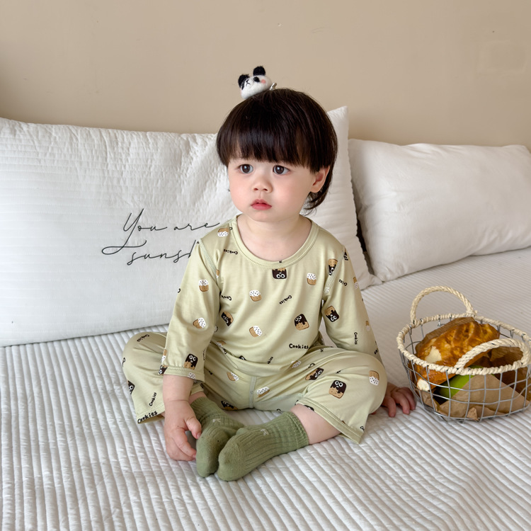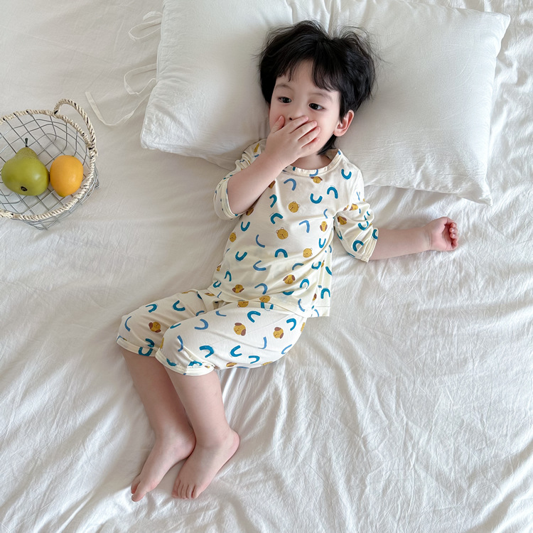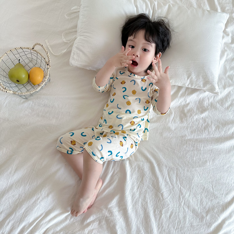 여름 아기 홈 세트 얇은 모달 어린이 잠옷 소년 소녀 통기성 Lyocell 소매