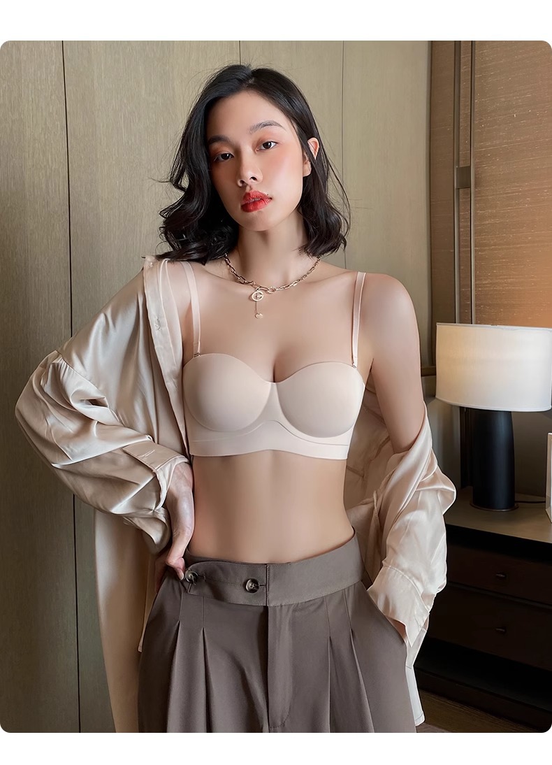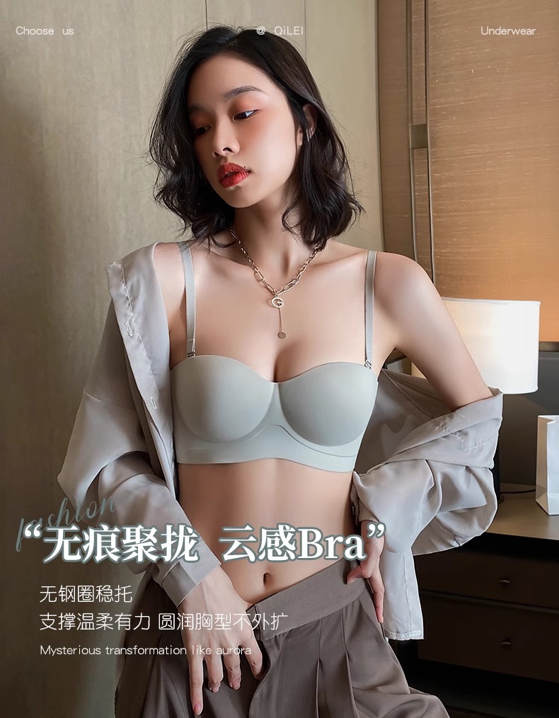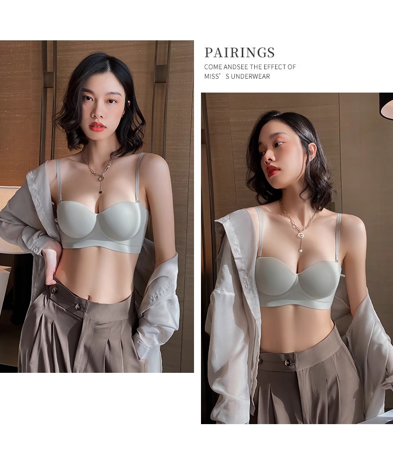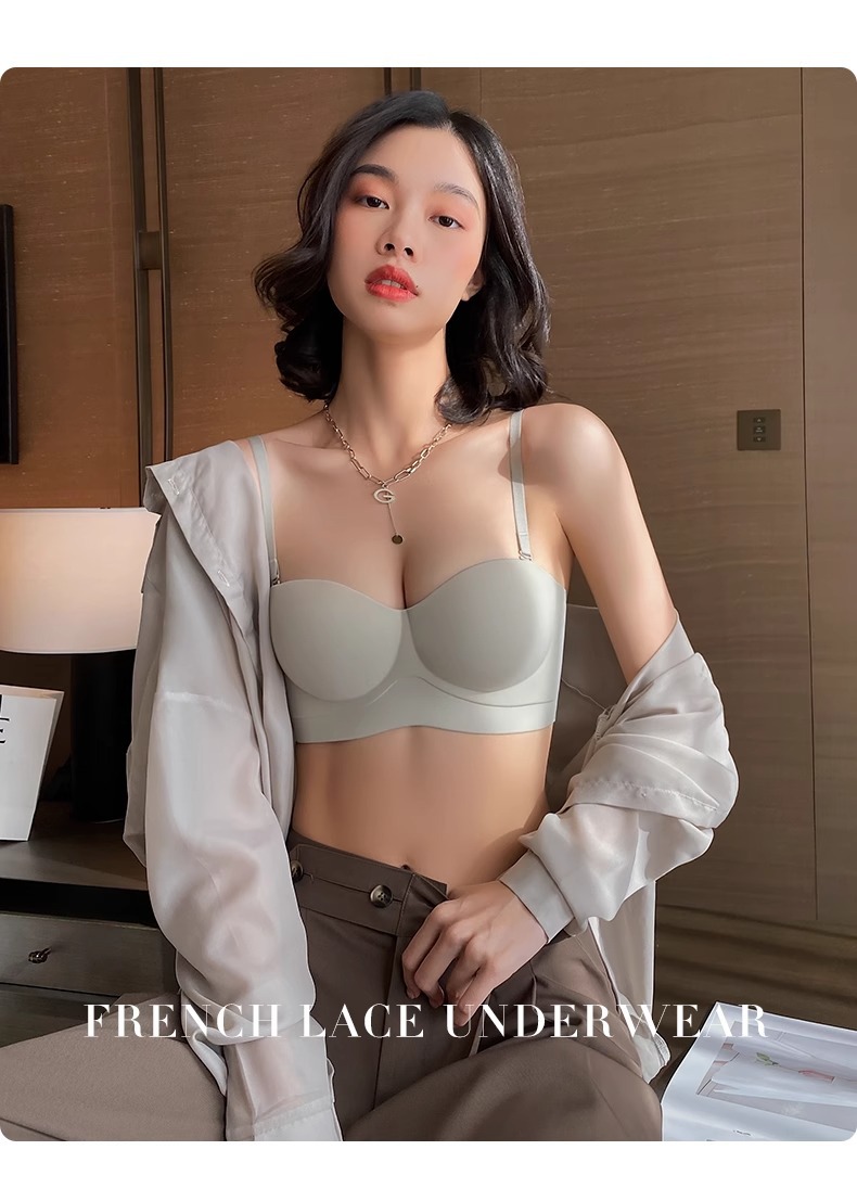 가슴이 작은 여성을 위한 심리스 속옷, 푸쉬업, 보조가슴, 처짐방지, 하프컵 브라, 테두리 없음, 빈컵 없음, 아름다운 가슴