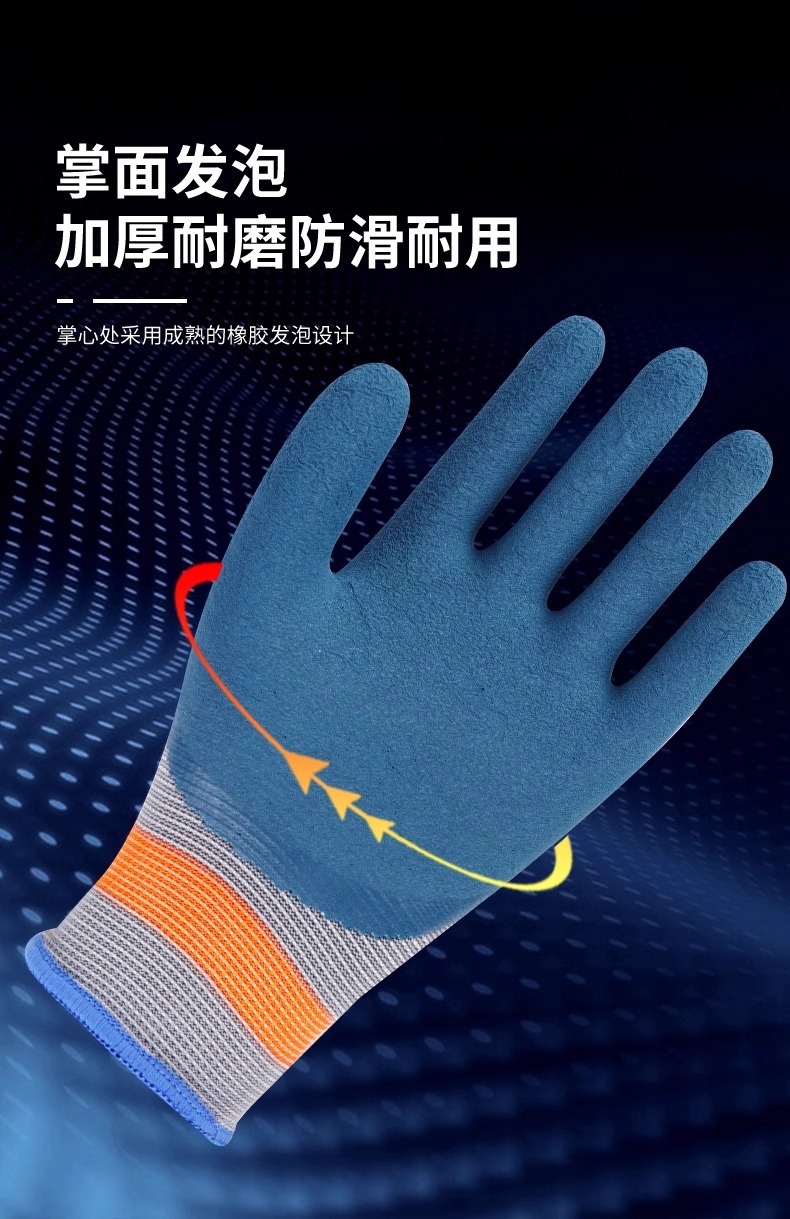 정품 타이어 고무 노동 장갑 작동 내마모성 미끄럼 통기성 라텍스 담그는 부드러운 현장 건설 작업스토어 가기