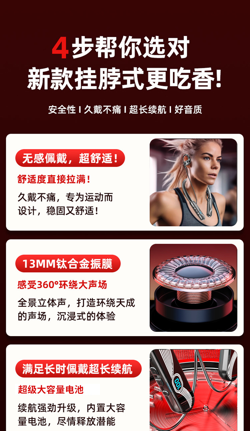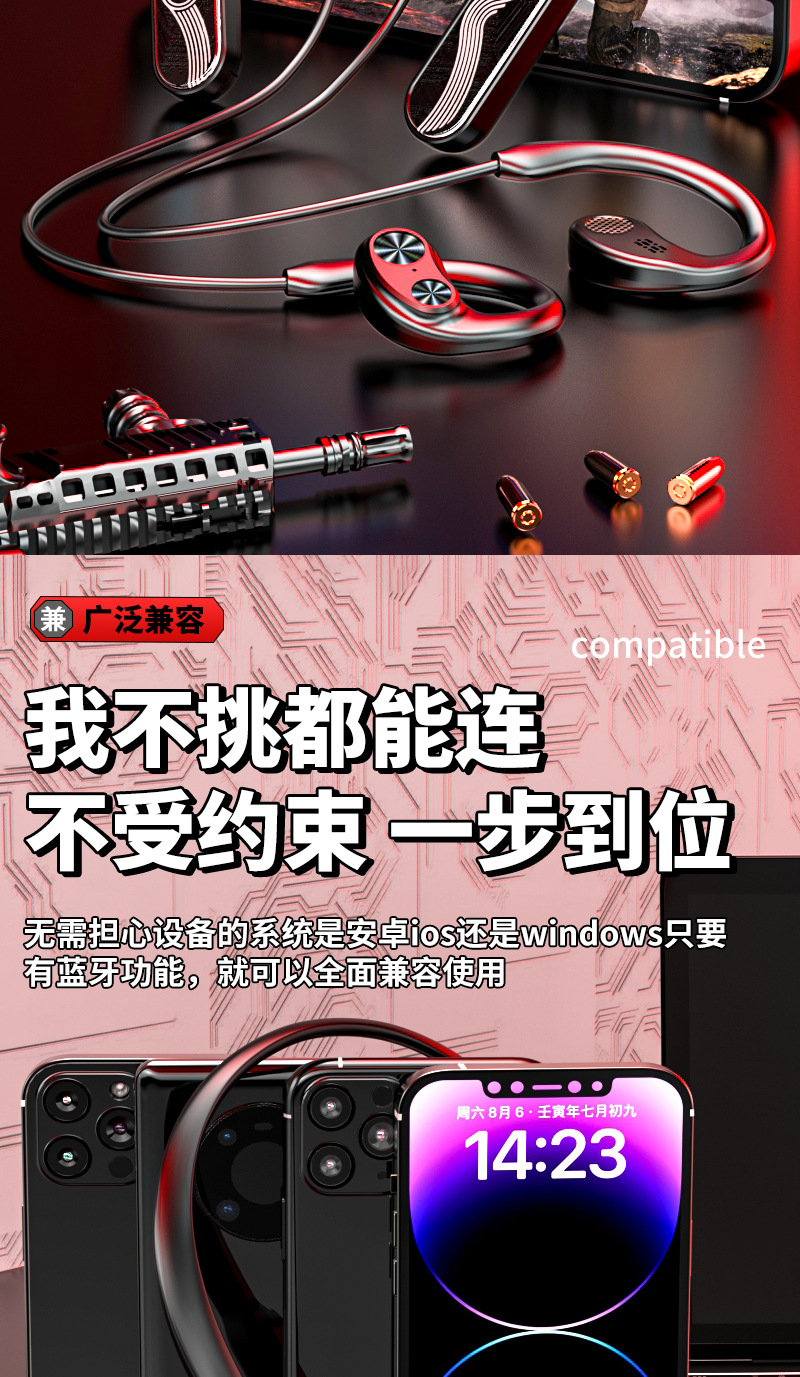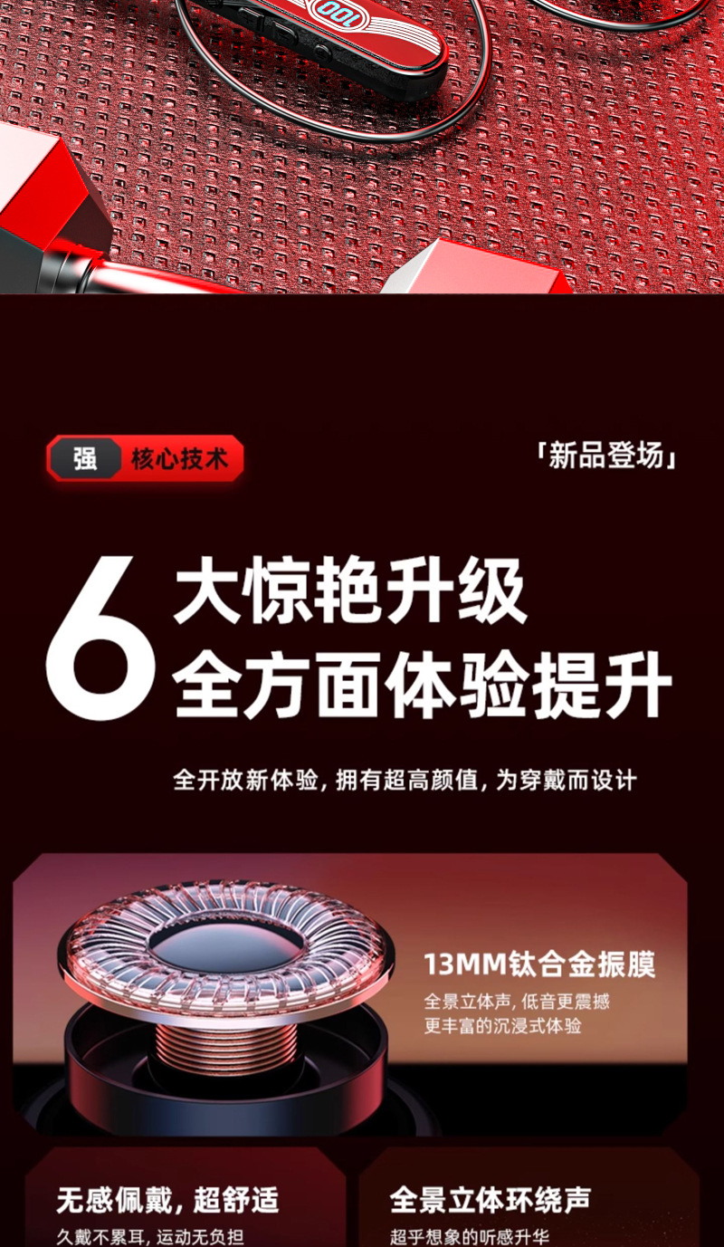 새로운 F19 블루투스 헤드셋, 넥밴드형 무선 스포츠 이어폰, 대용량 배터리, 귀에 들어가지 않음, 착용 시 통증 없음, 카드 삽입 가능스토어 가기