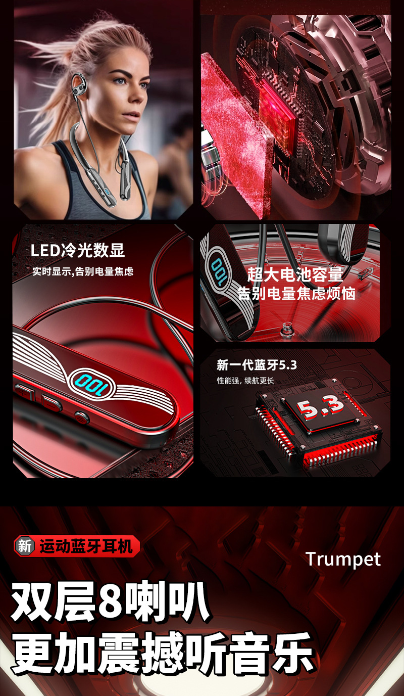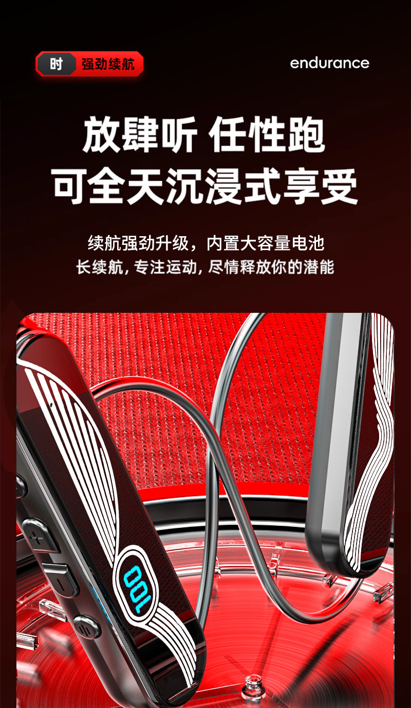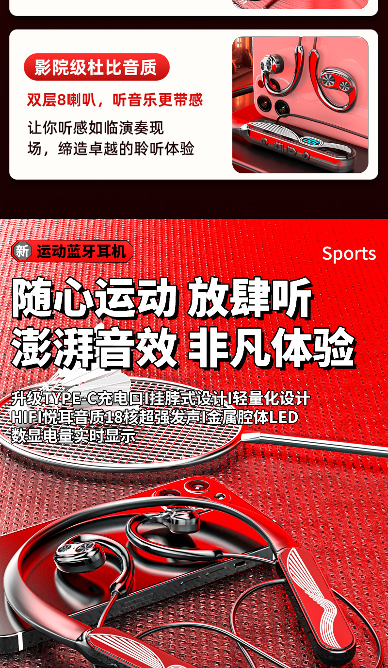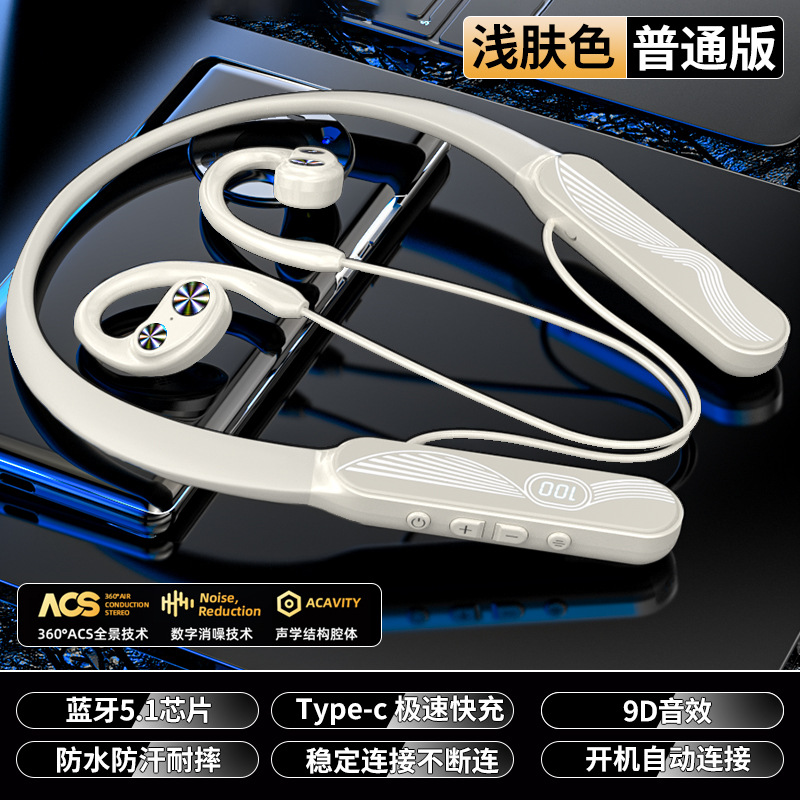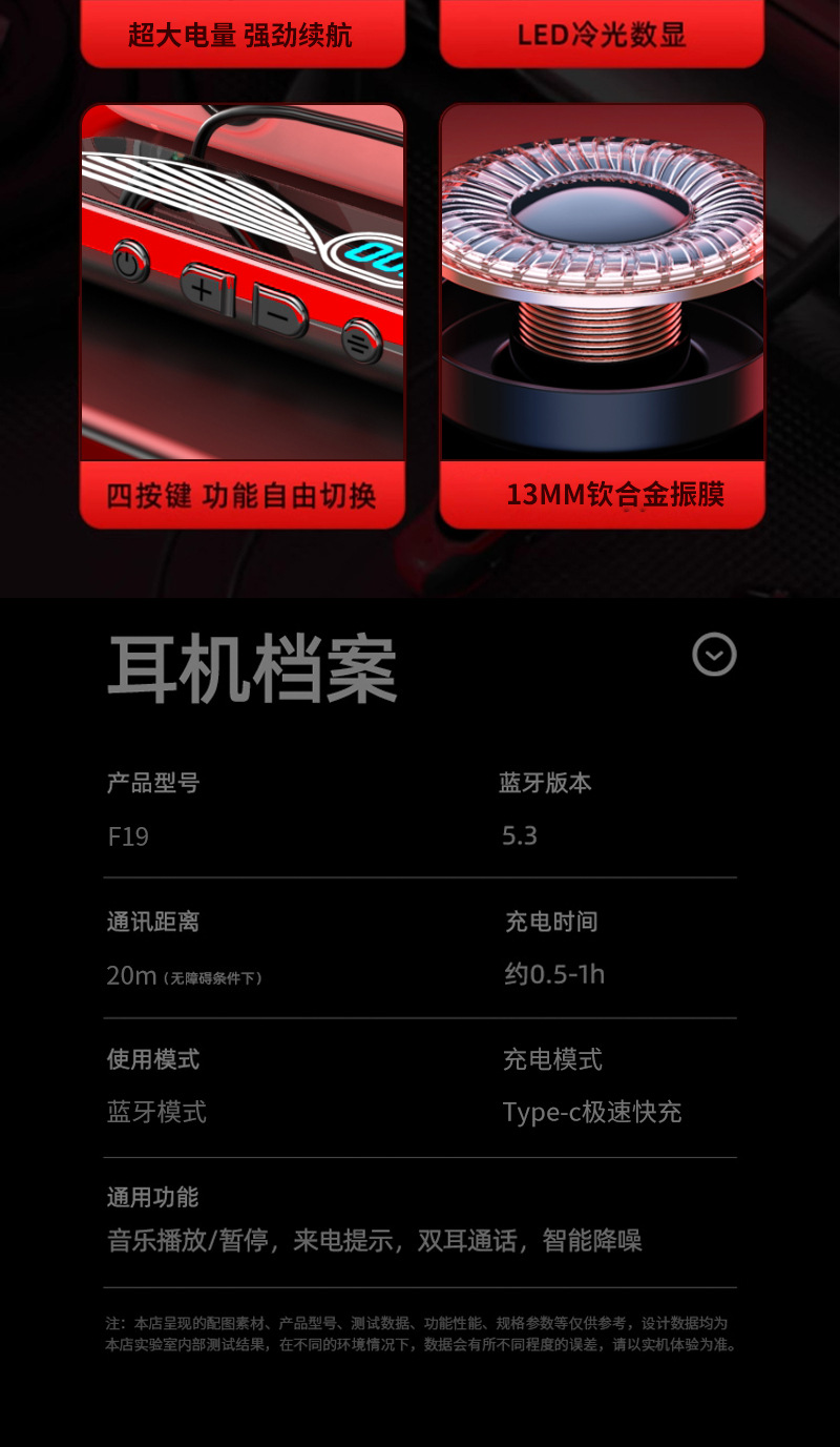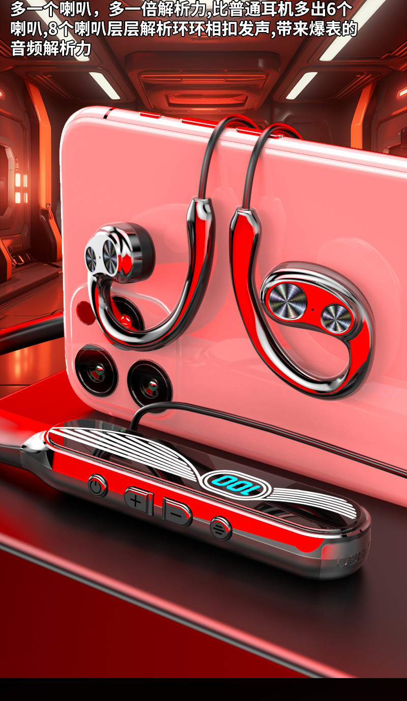 새로운 F19 블루투스 헤드셋, 넥밴드형 무선 스포츠 이어폰, 대용량 배터리, 귀에 들어가지 않음, 착용 시 통증 없음, 카드 삽입 가능