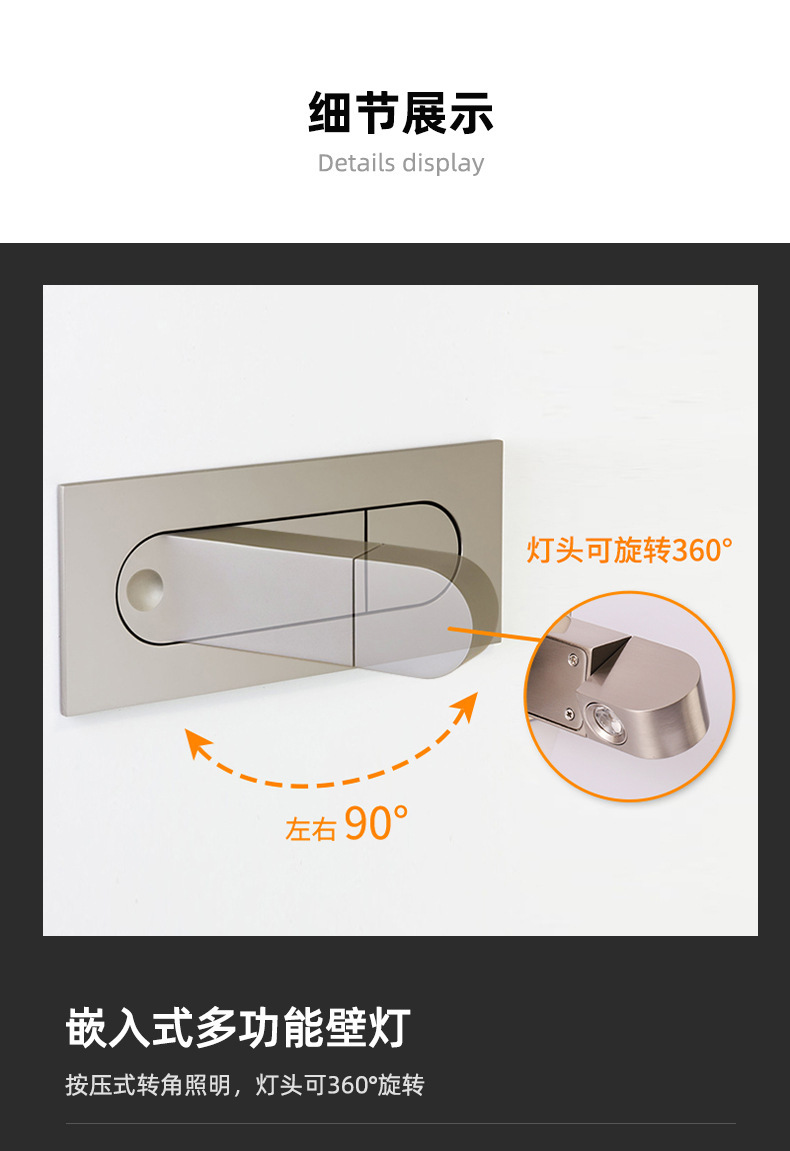 홈스테이 침실 회전 가능한 유니버설 헤드 벽 램프 국경 핫 판매 간단한 숨겨진 스위치 호텔 침대 독서 벽 램프스토어 가기