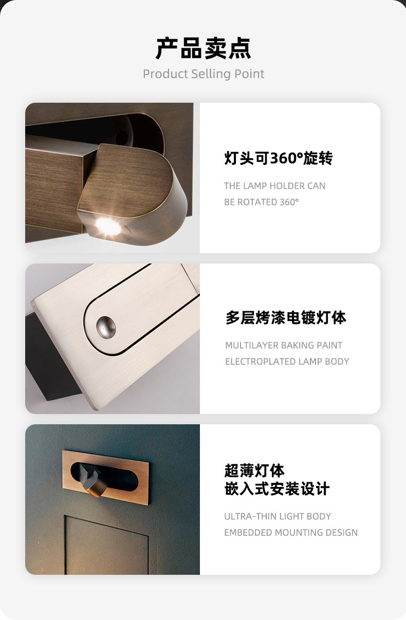 홈스테이 침실 회전 가능한 유니버설 헤드 벽 램프 국경 핫 판매 간단한 숨겨진 스위치 호텔 침대 독서 벽 램프