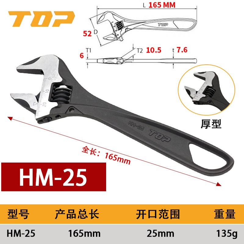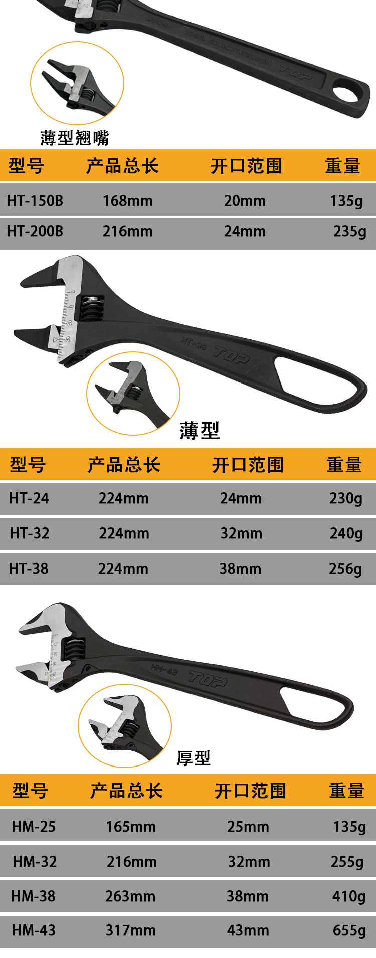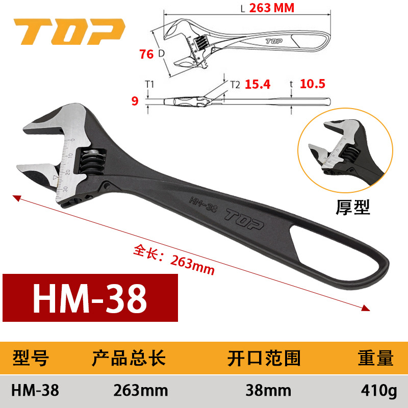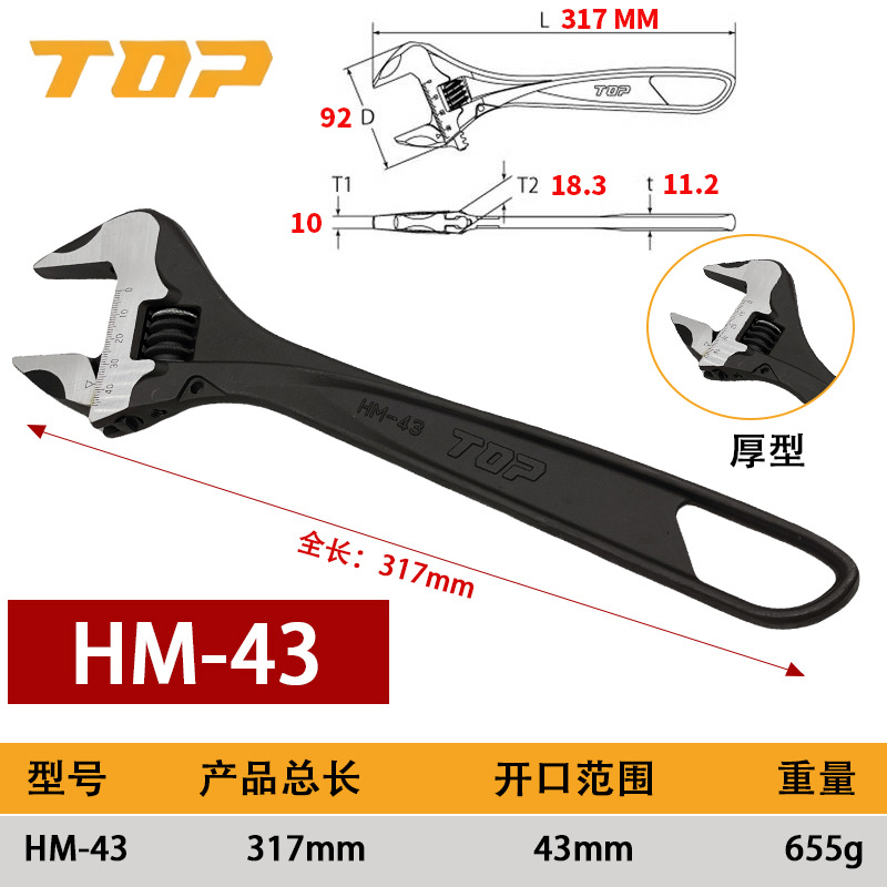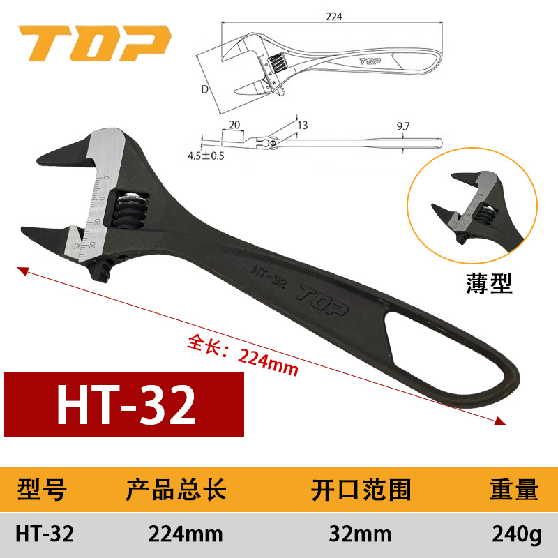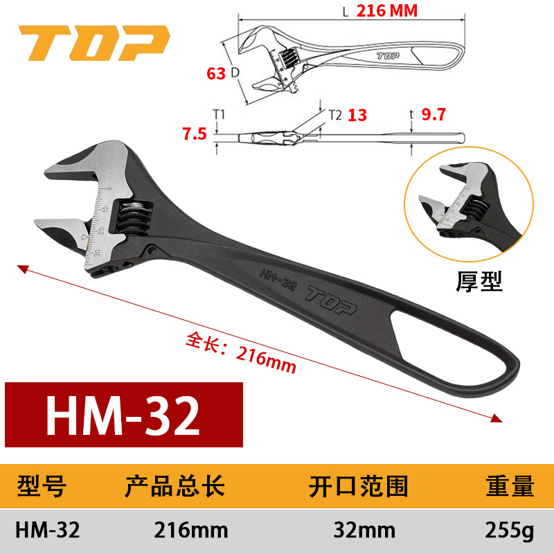 브랜드 조절 렌치를 넘어 일본 TOP 수입 산업 등급 얇은 입 다기능 대형 오프닝 파이프 렌치 HM-32