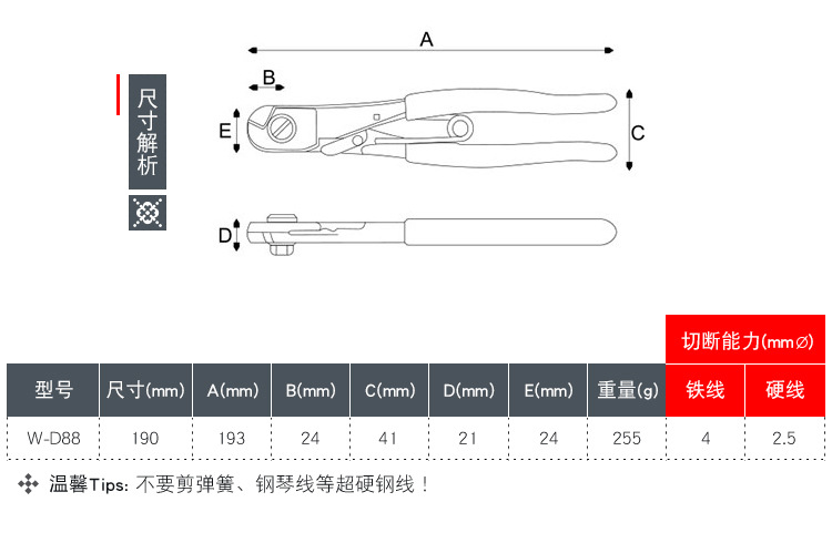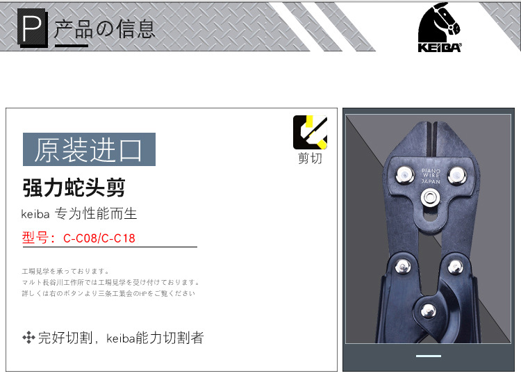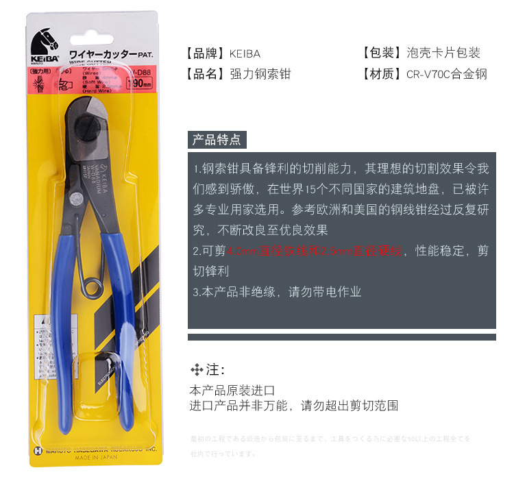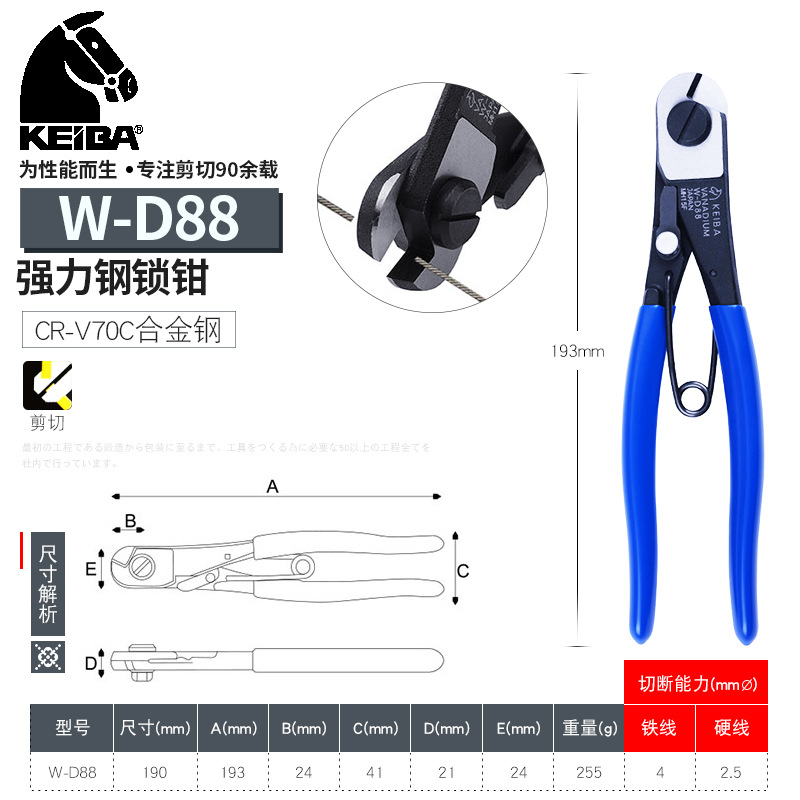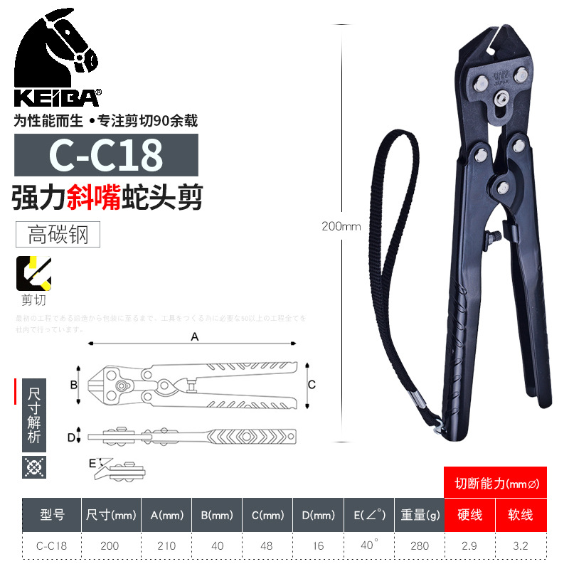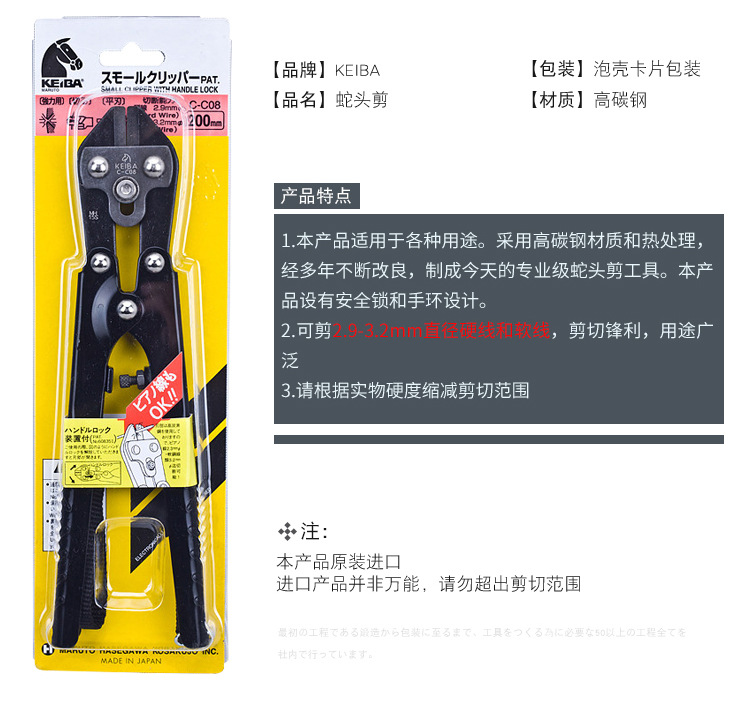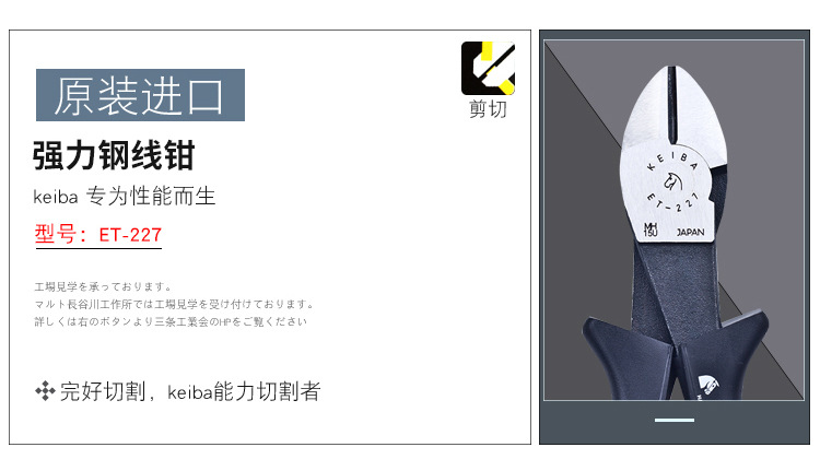 일본 Keiba Horse 브랜드 Oblique Nose Pliers ET-227 수입 된 강력한 Oblique Nose Pliers 와이어 브레이킹 플라이어 스네이크 헤드 전단 W-D88