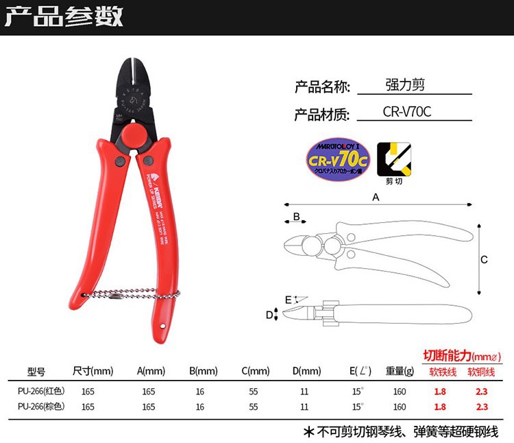 • PU-266 노동 절약형 대각선 노즈 플라이어 150mm