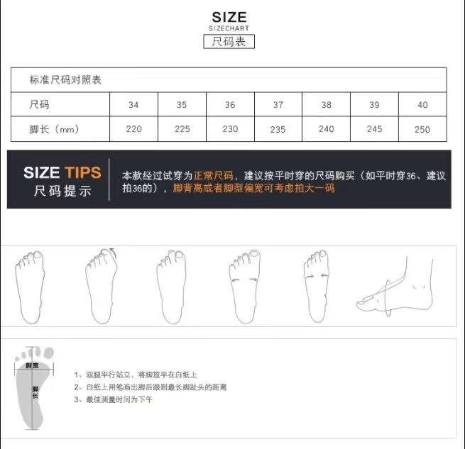 【关于售后】售出鞋子如有任何问题均需第一时间联系我们客服说明情况,我们会负责到底。如有退换货运费由买家自己承担!如要 订大货请先拍样品,本店不支持大批量退货穿过的鞋子是不支持退换