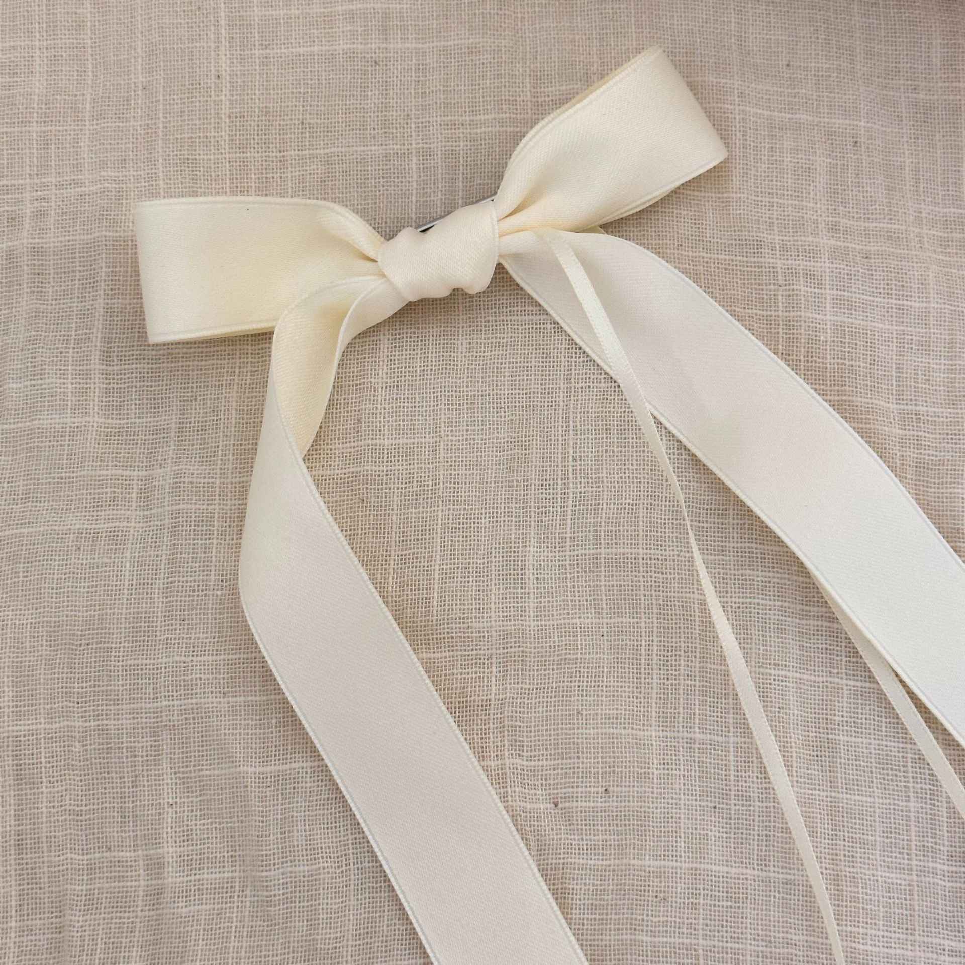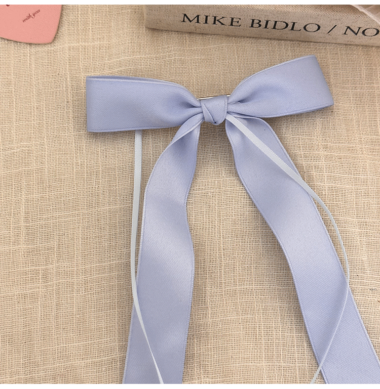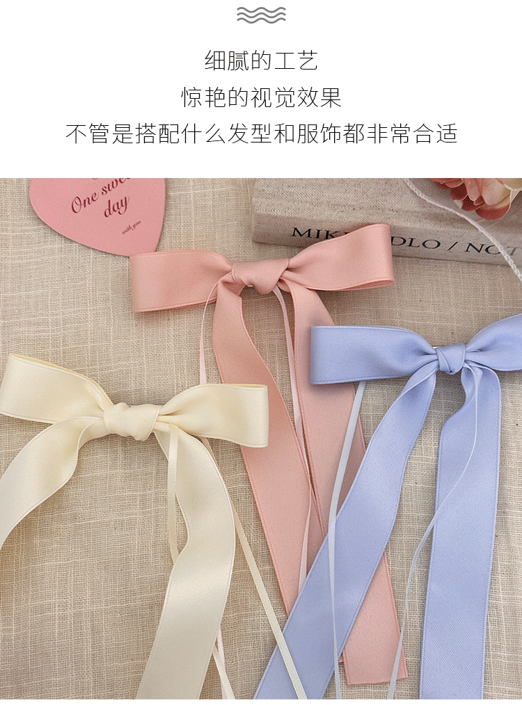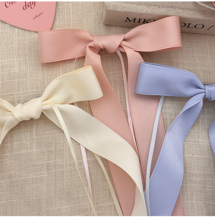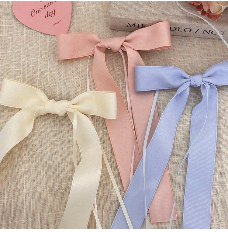 여름 프랑스 스타일 우아한 긴 리본 활 포니 테일 클립 탑 클립 모리 스타일 헤어핀 요정 사진 헤어핀 액세서리