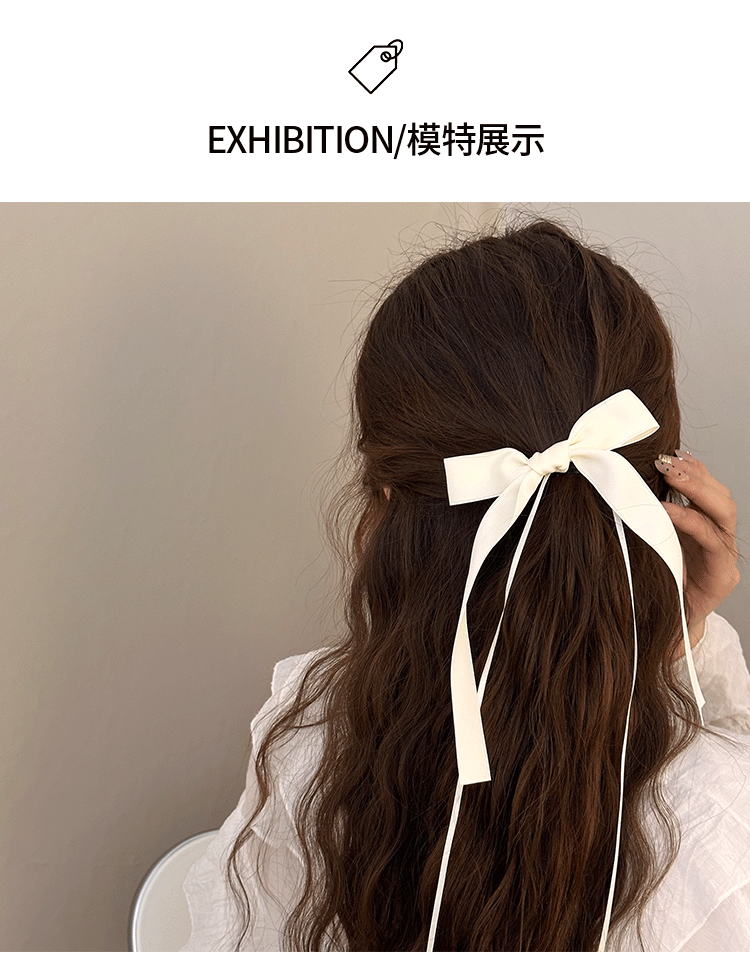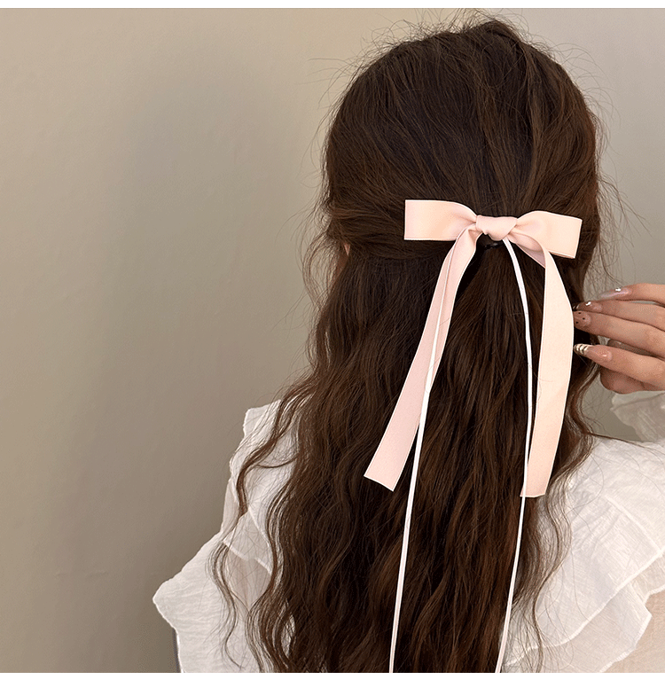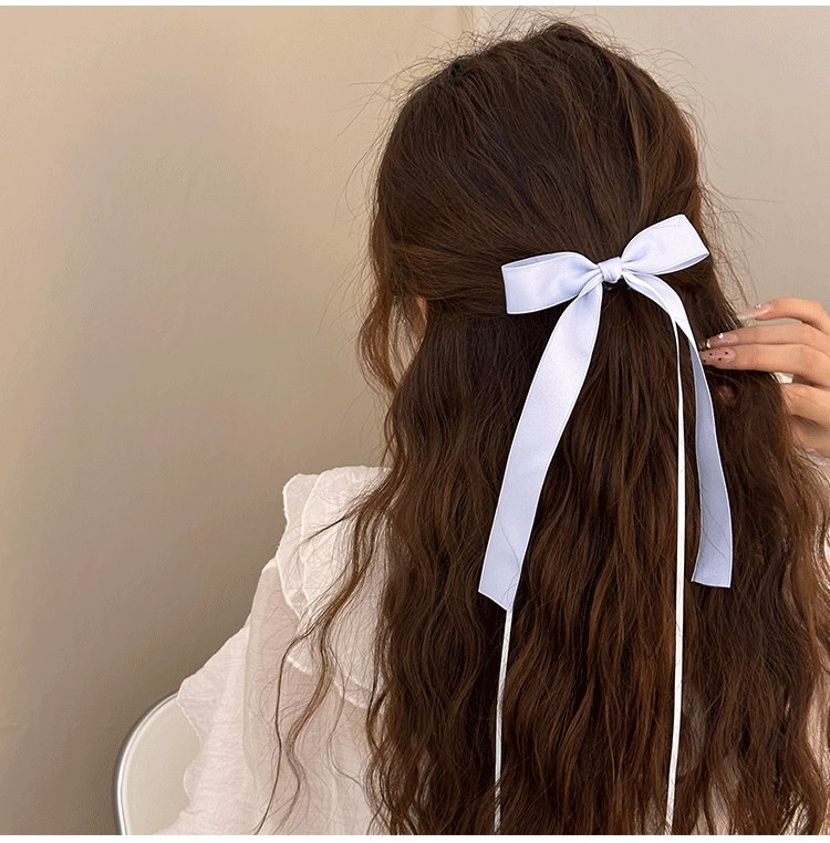 여름 프랑스 스타일 우아한 긴 리본 활 포니 테일 클립 탑 클립 모리 스타일 헤어핀 요정 사진 헤어핀 액세서리스토어 가기