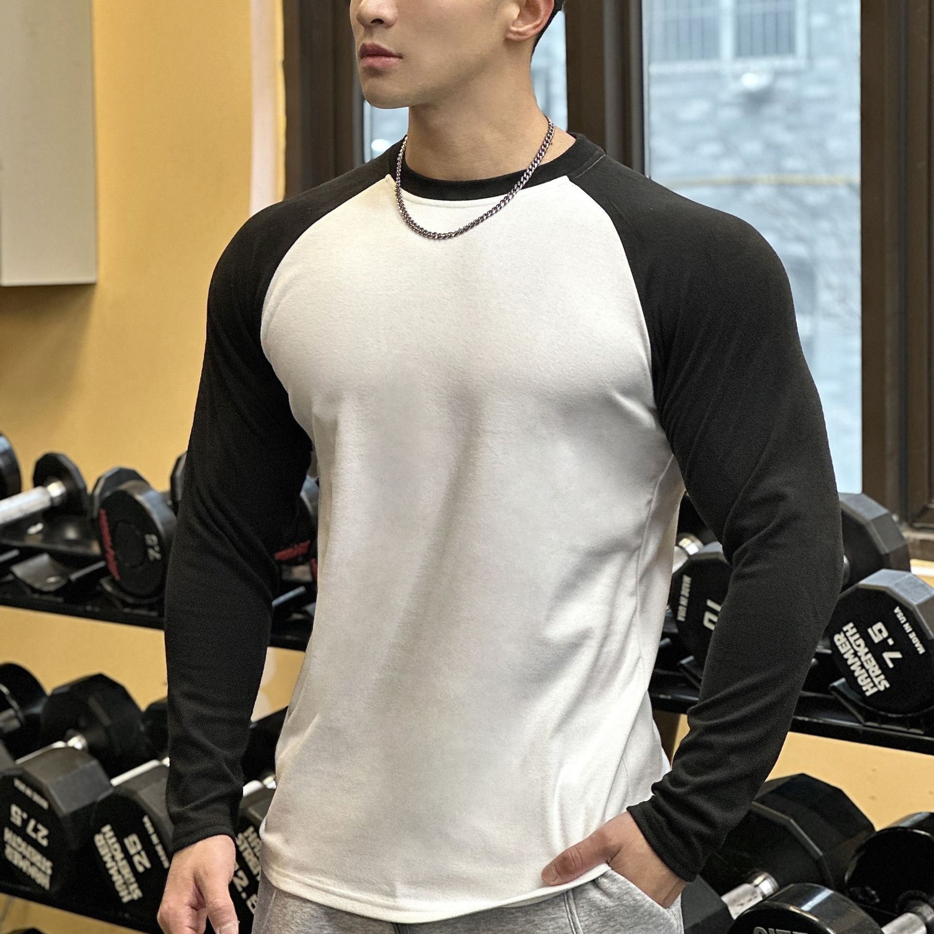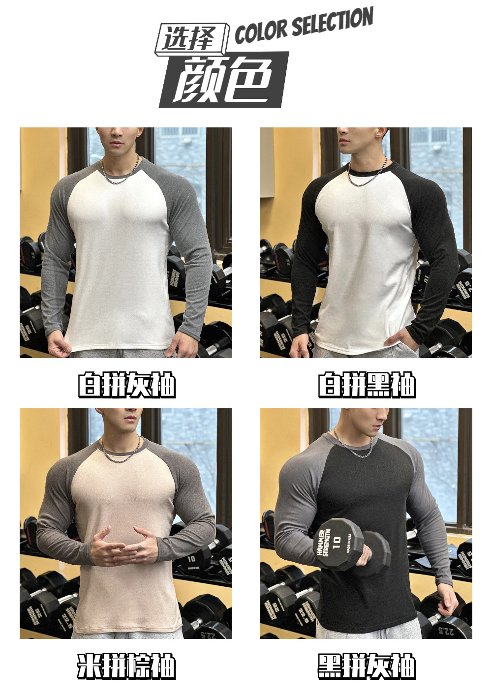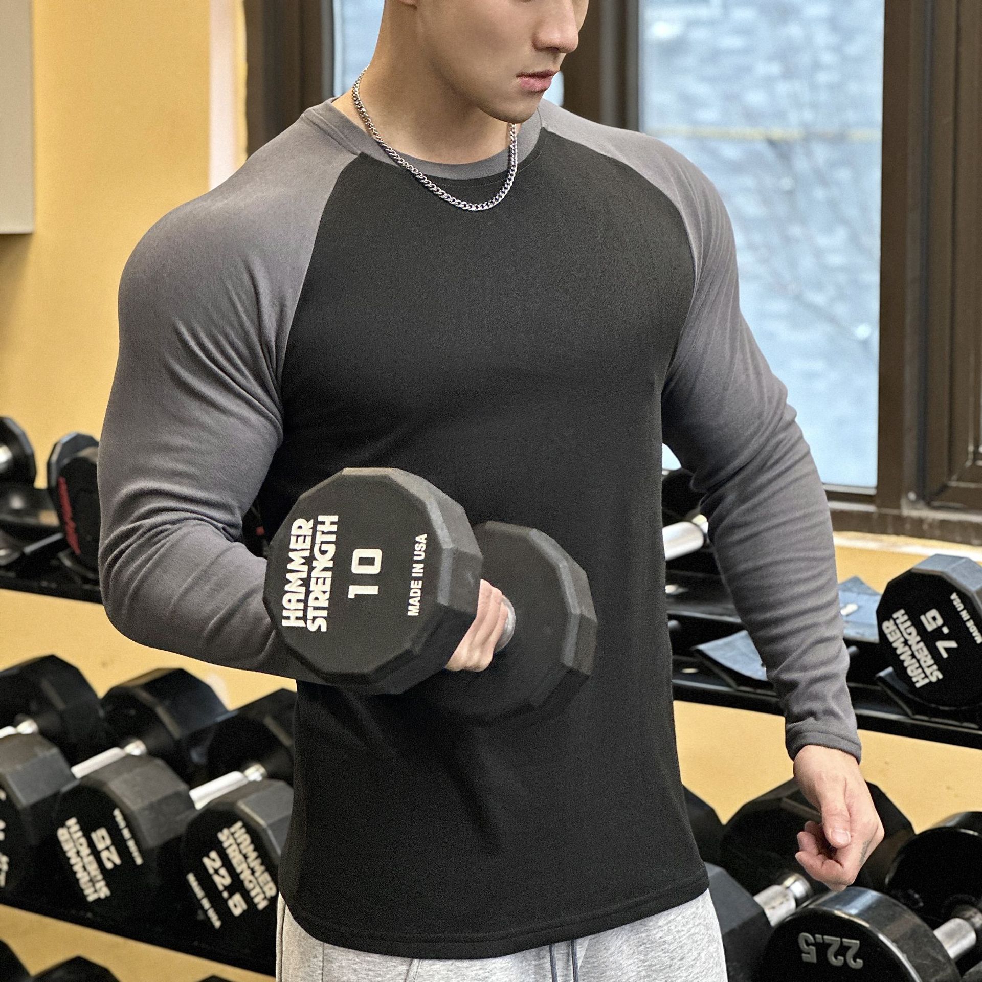 근육 피트니스 형제 스포츠 남자 긴팔 티셔츠 느슨한 플러스 사이즈 컬러 블록 러닝 탑베이스 셔츠스토어 가기