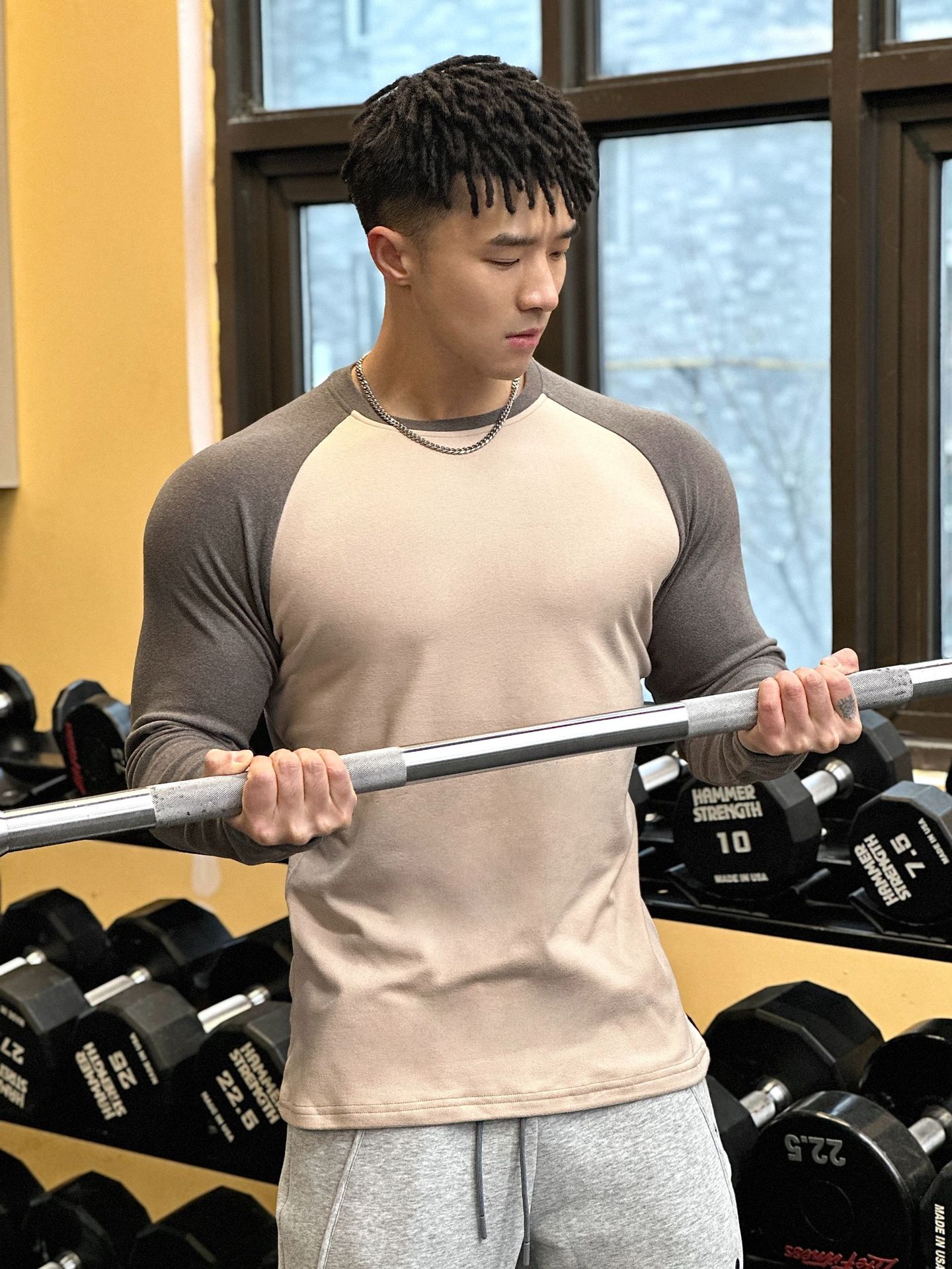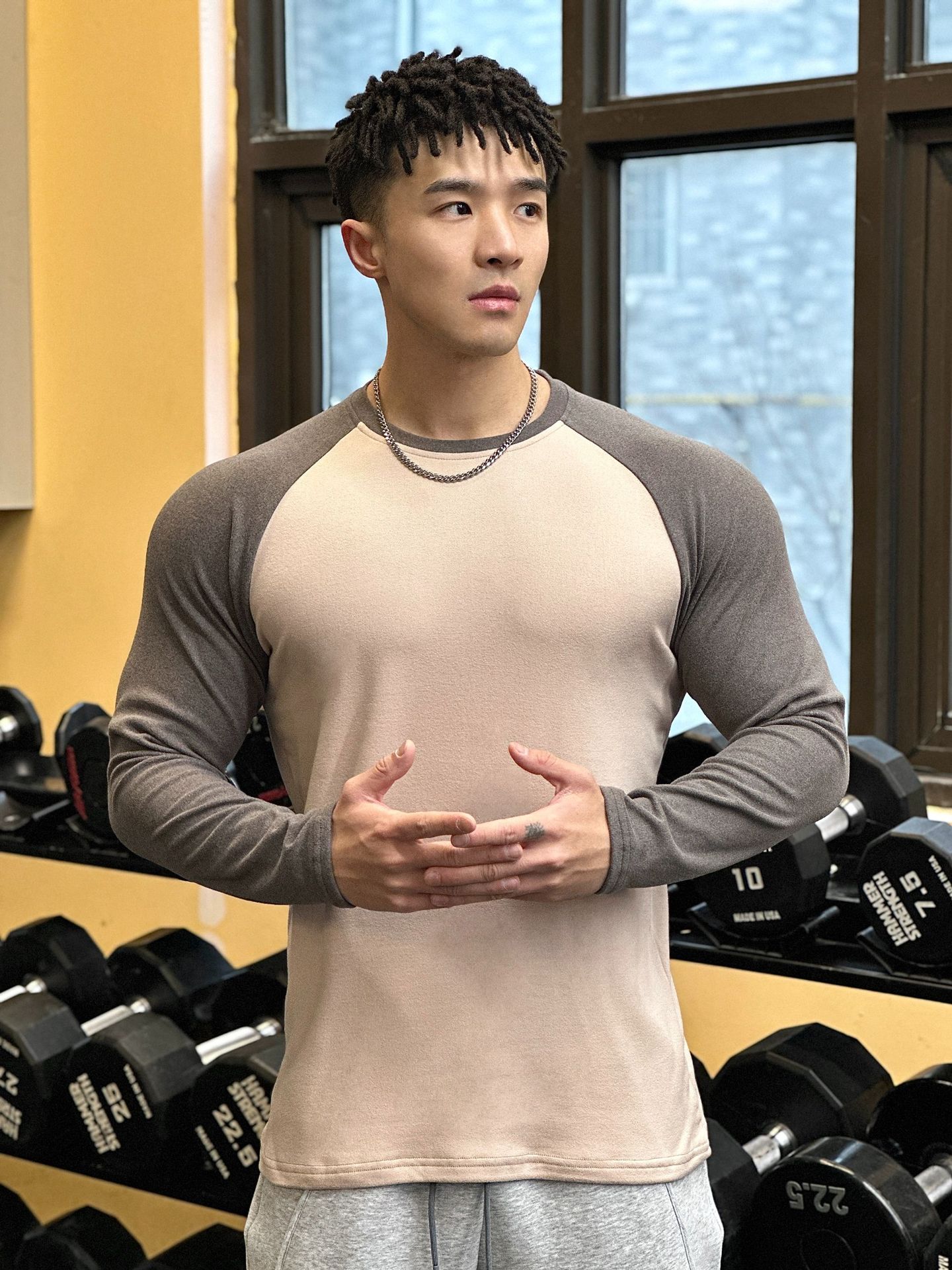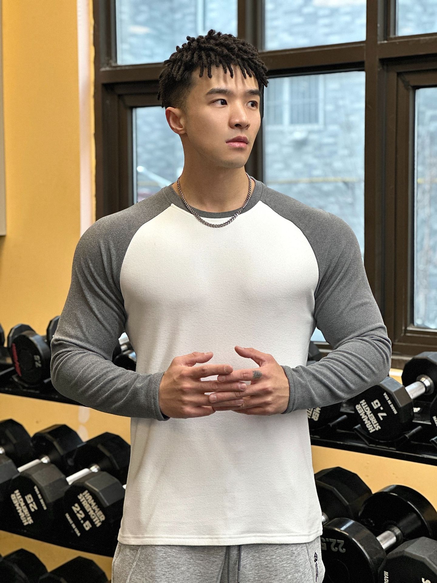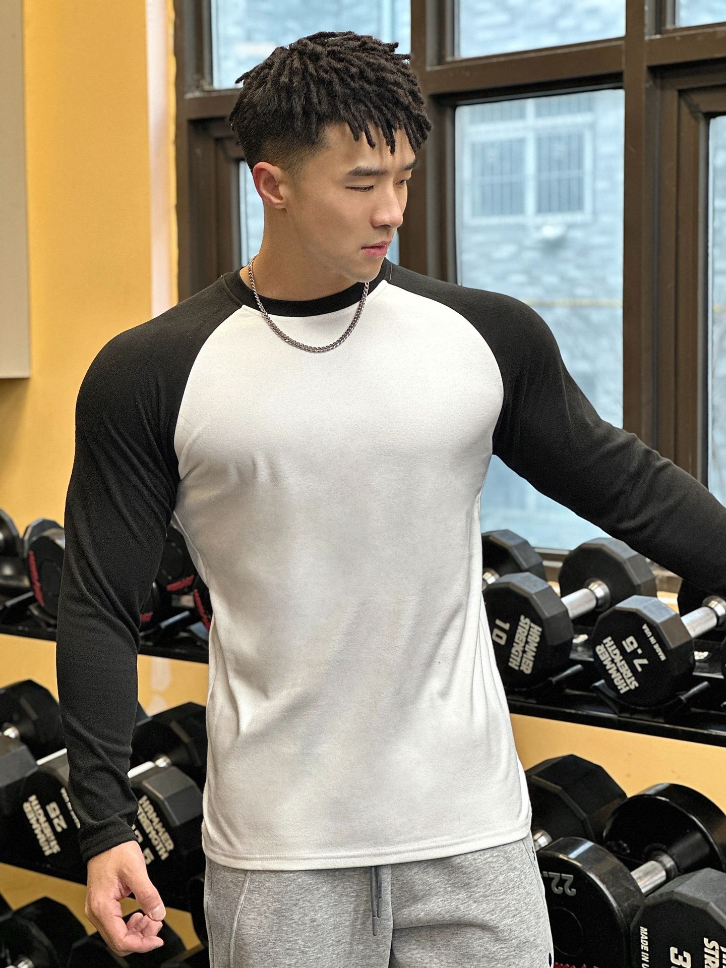 근육 피트니스 형제 스포츠 남자 긴팔 티셔츠 느슨한 플러스 사이즈 컬러 블록 러닝 탑베이스 셔츠스토어 가기