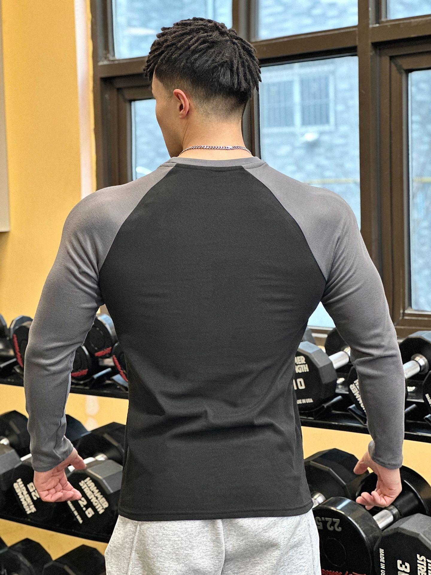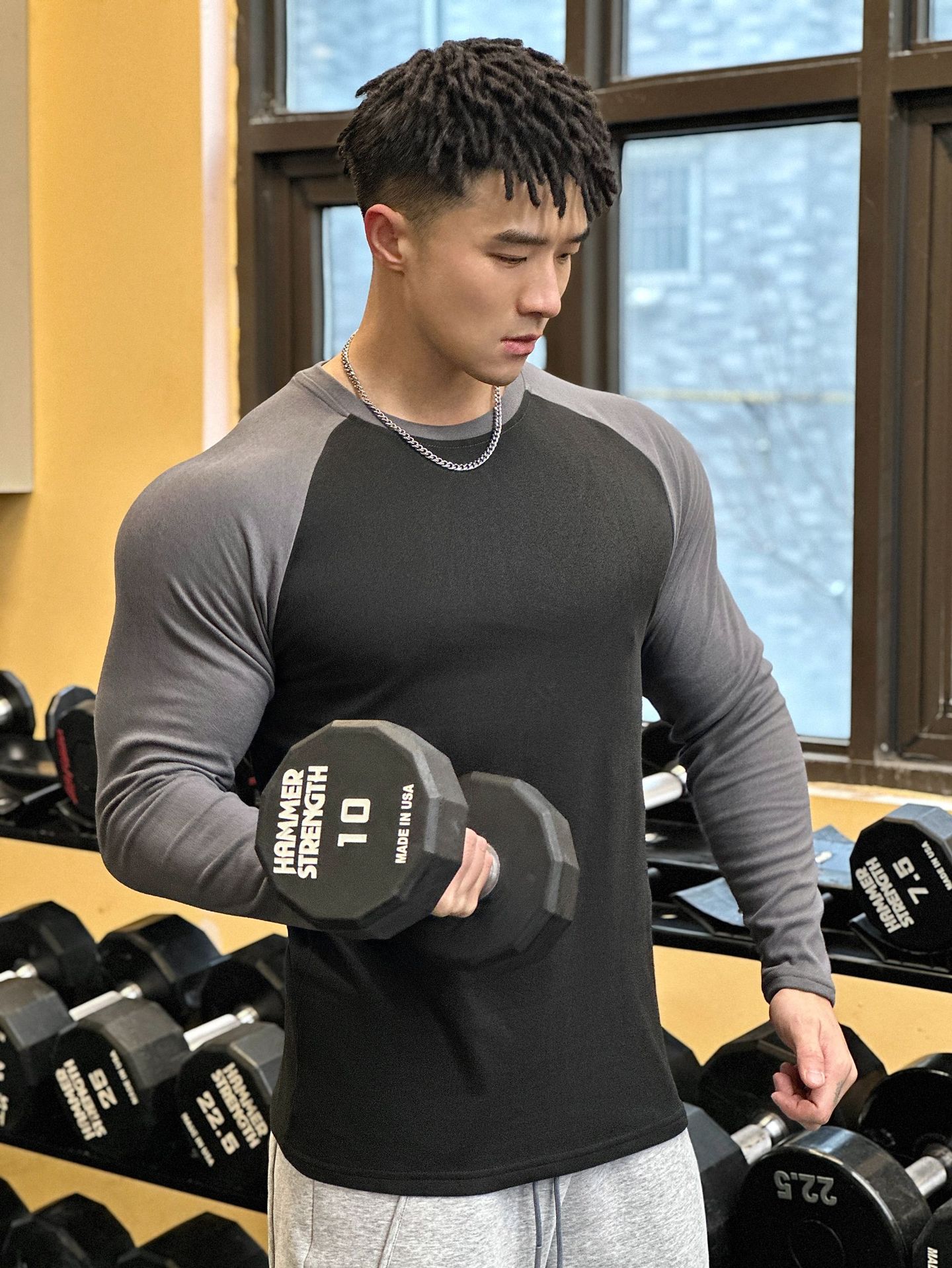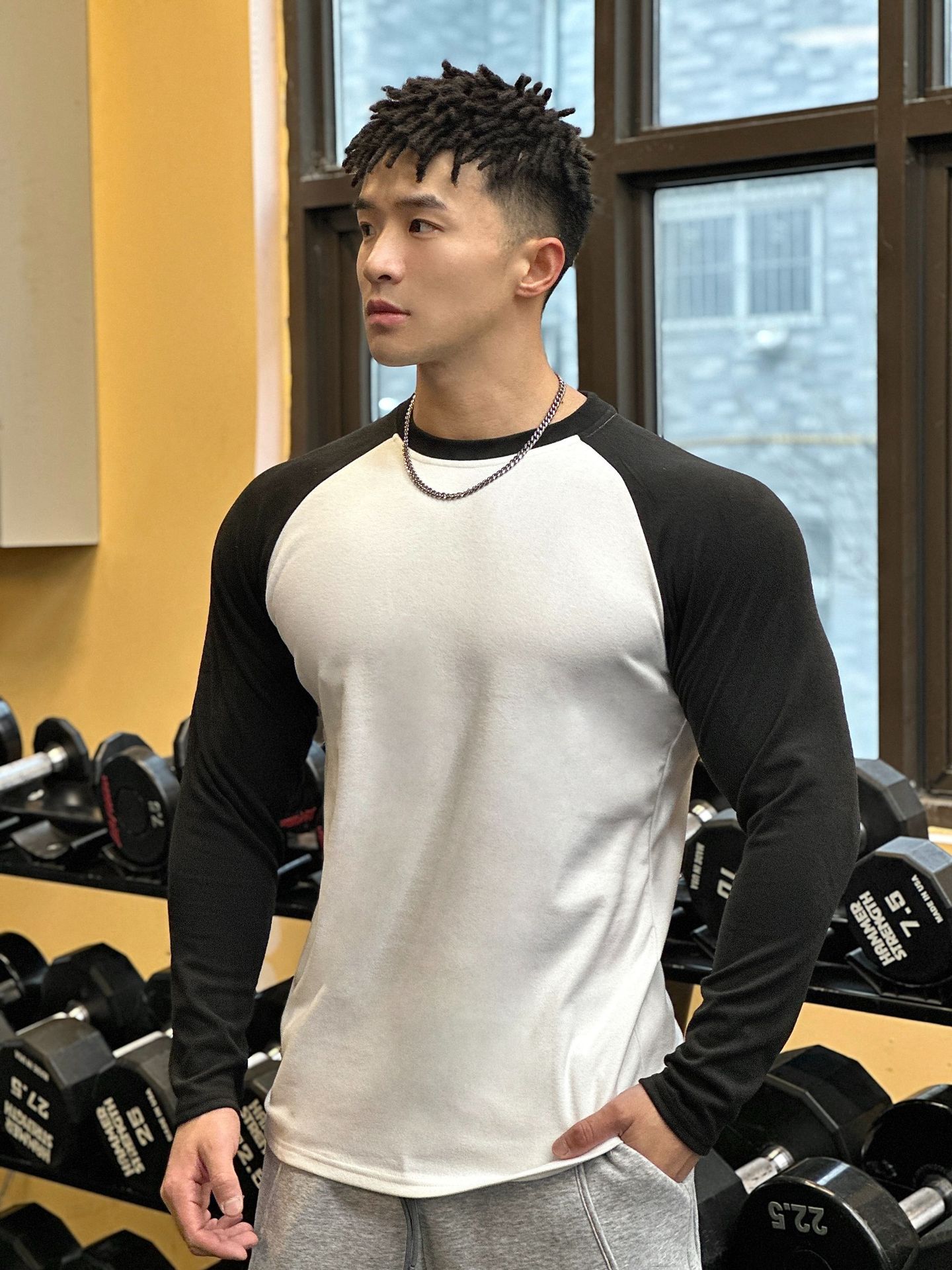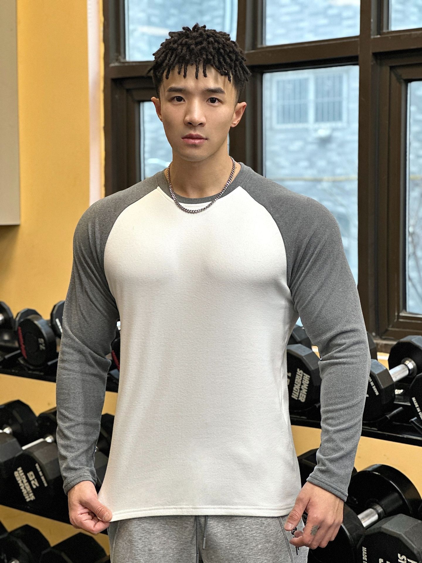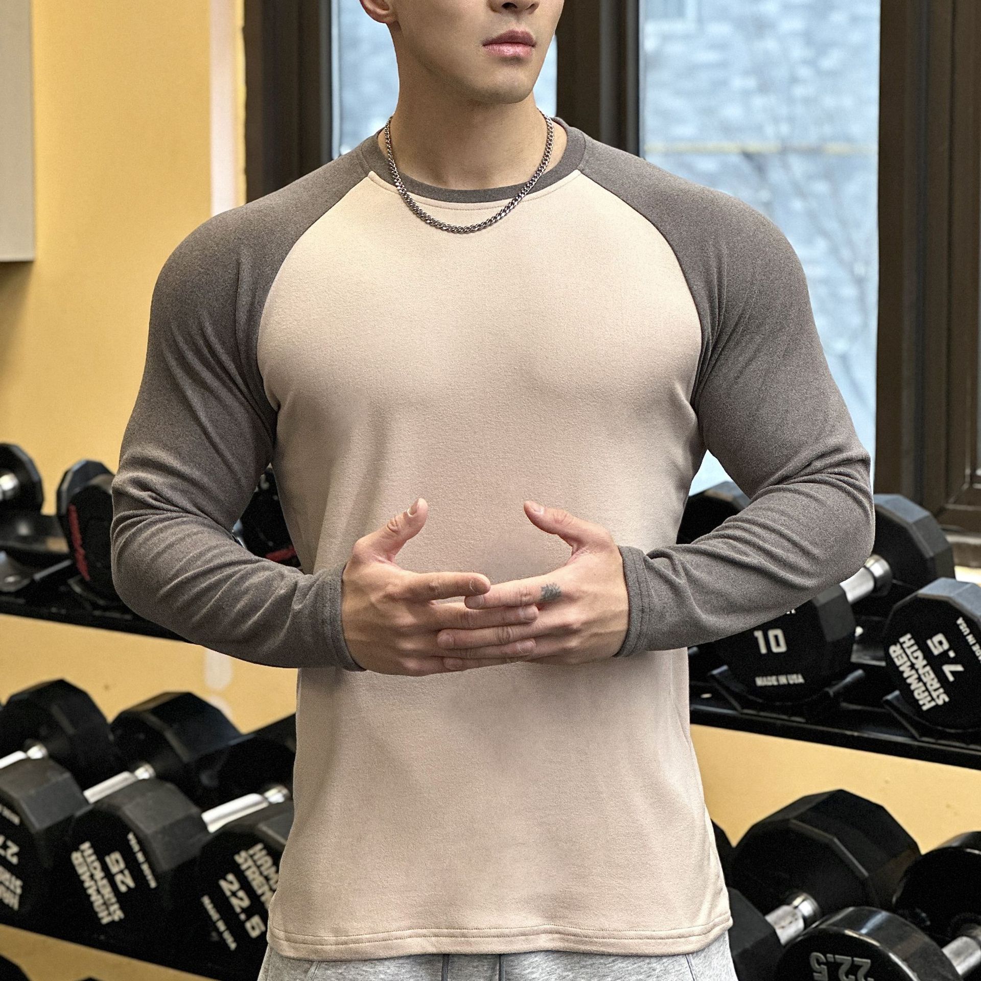 근육 피트니스 형제 스포츠 남자 긴팔 티셔츠 느슨한 플러스 사이즈 컬러 블록 러닝 탑베이스 셔츠