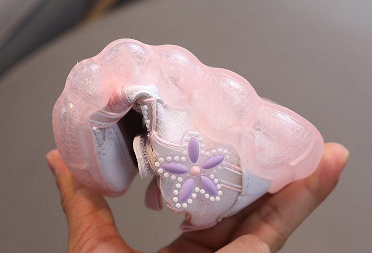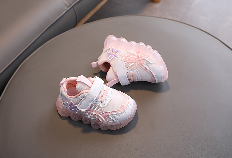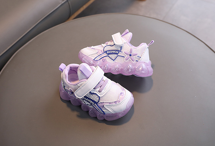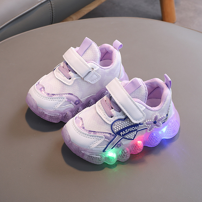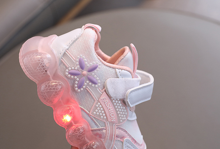 여아 꽃무늬 발광 운동화 2024 봄 가을 아동용 부드러운 밑창 미끄럼 방지 캐주얼 다용도 신발 아기 하트 신발스토어 가기