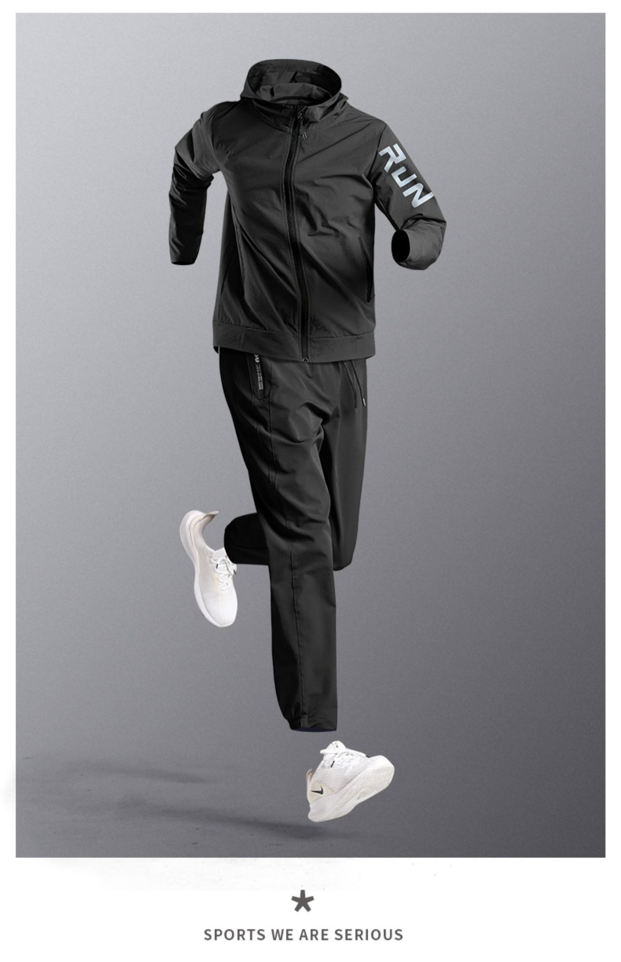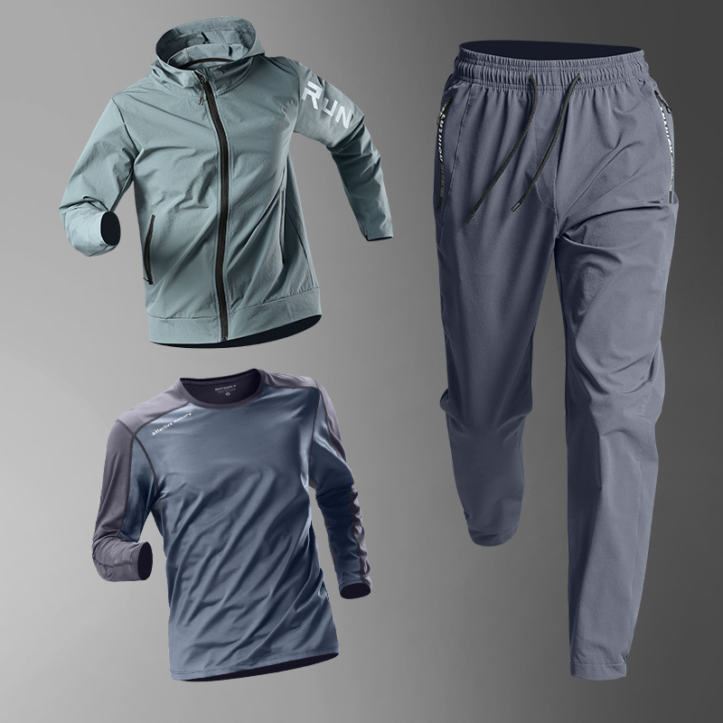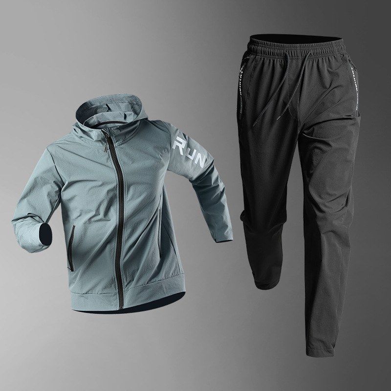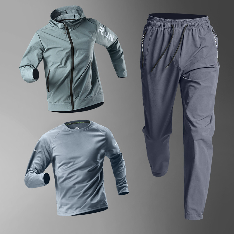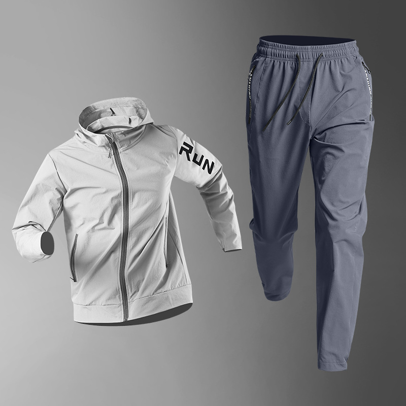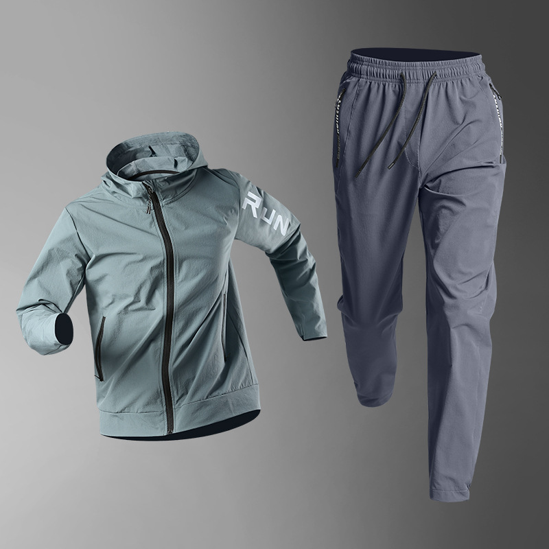 스포츠 세트 남자 봄 달리기 피트니스 옷 아침 달리기 야외 스포츠 빠른 건조 승마 훈련 재킷 옷 장비