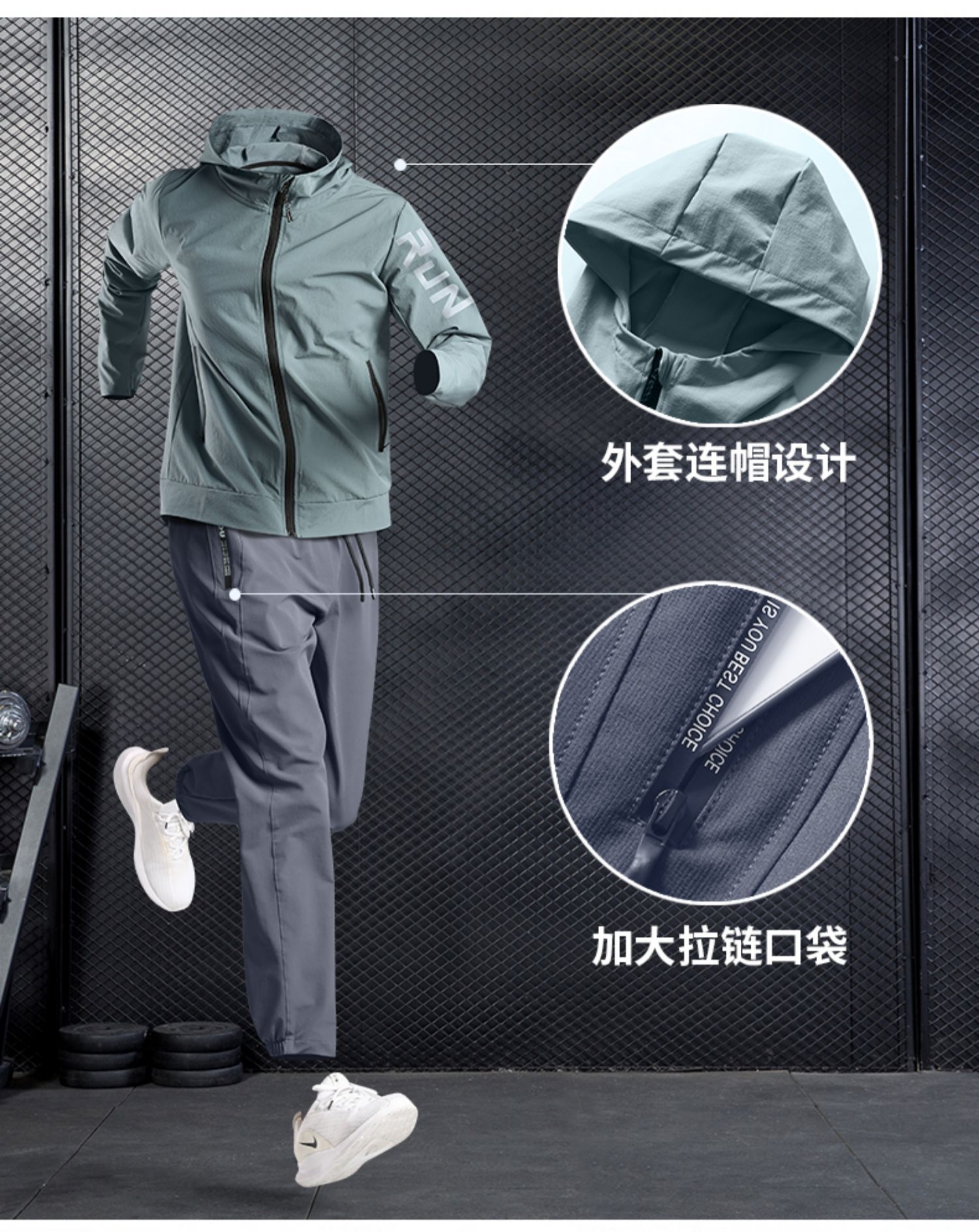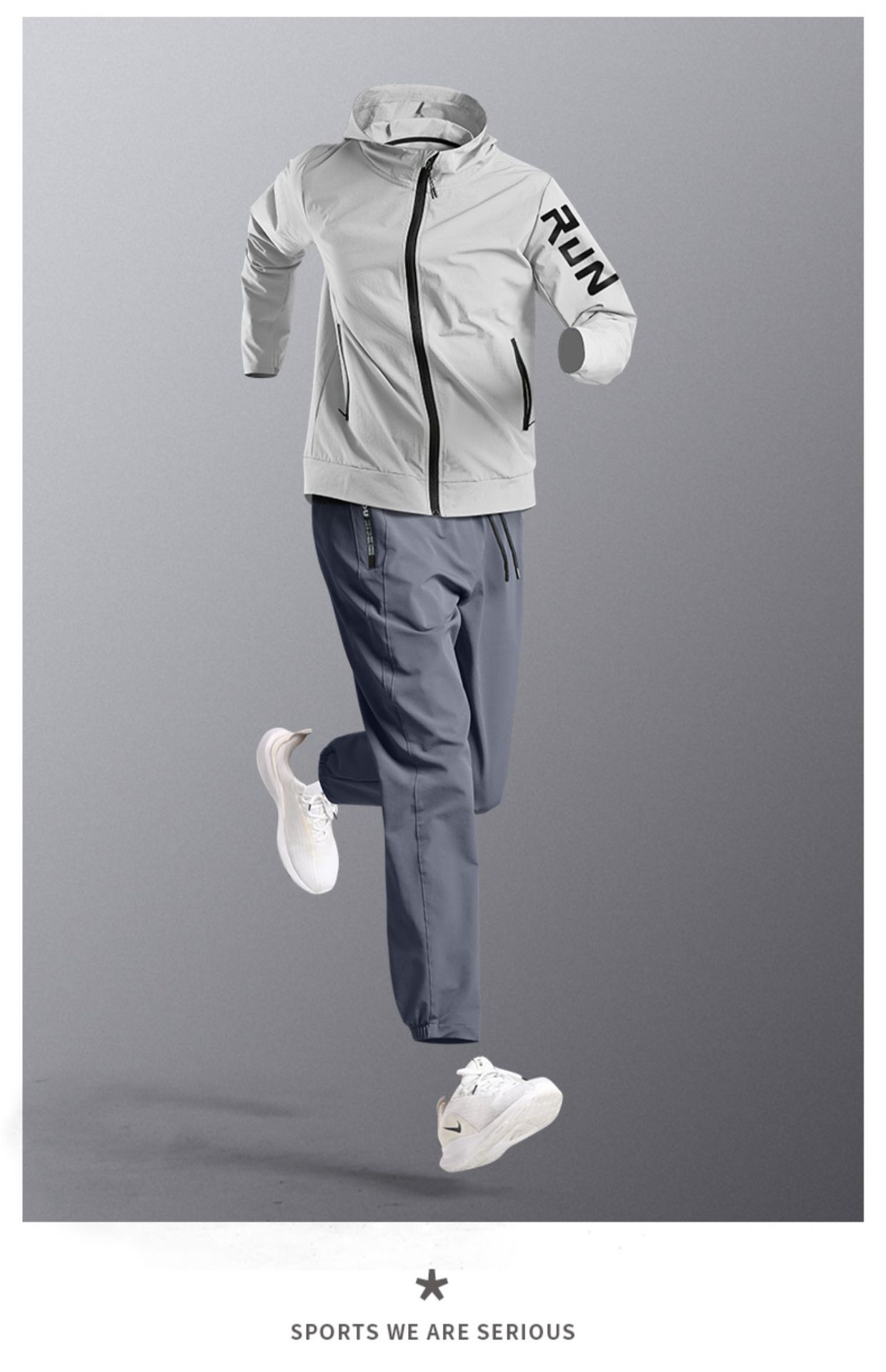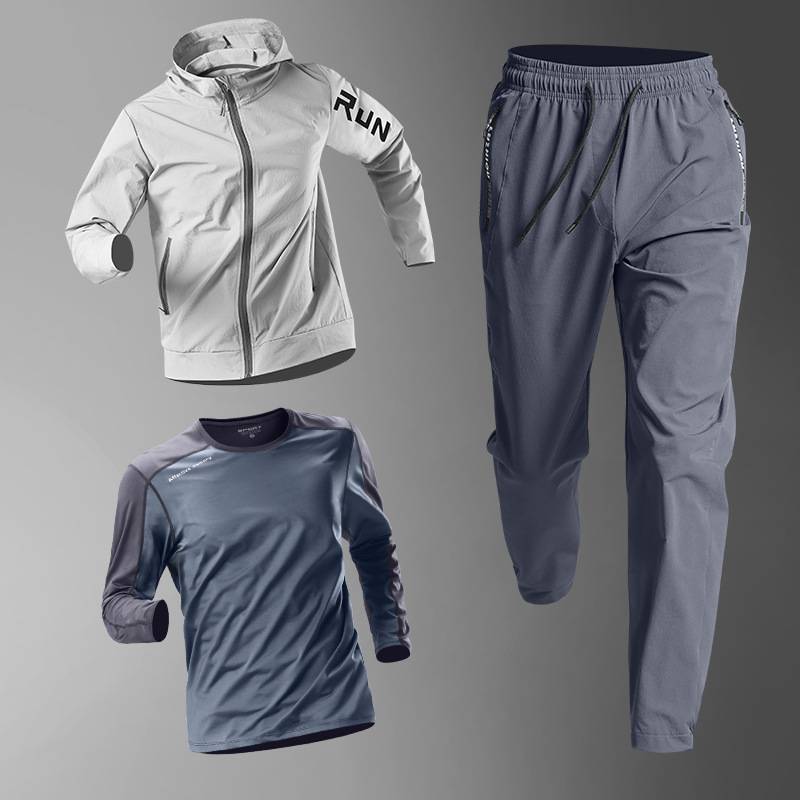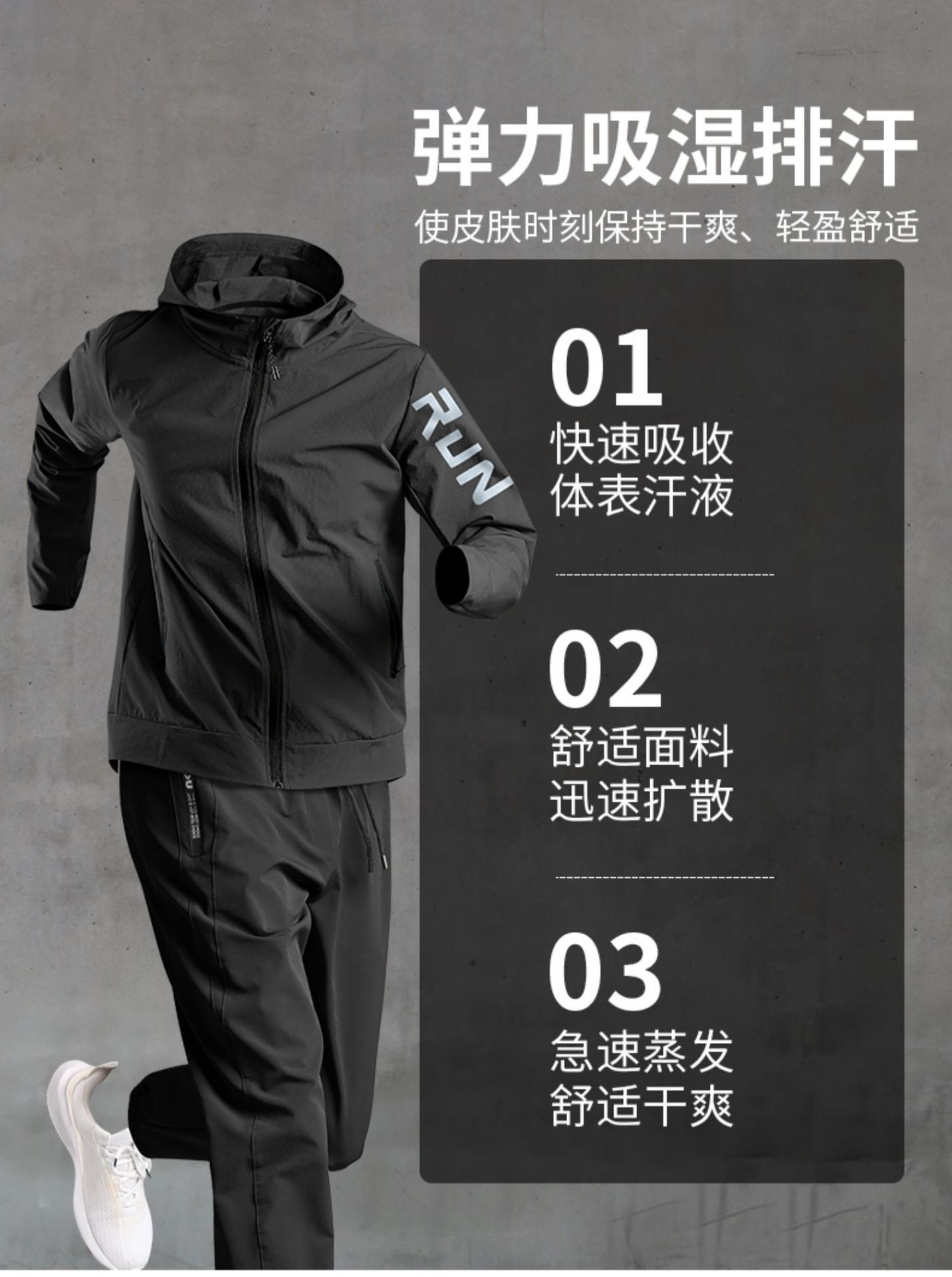 스포츠 세트 남자 봄 달리기 피트니스 옷 아침 달리기 야외 스포츠 빠른 건조 승마 훈련 재킷 옷 장비