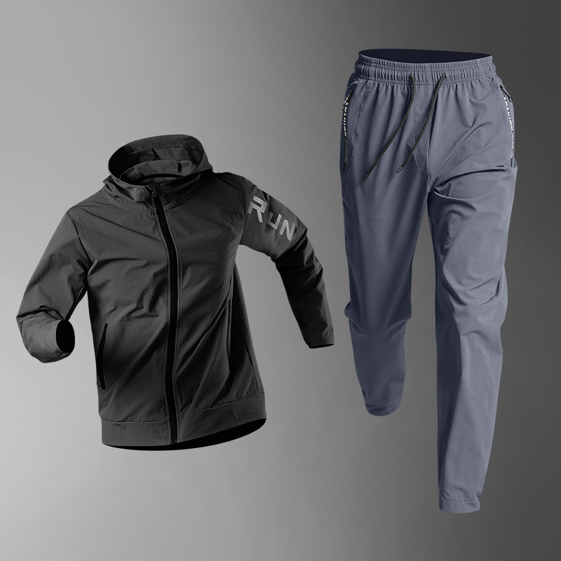 • B81 회색과 검은 색 투피스 세트 [방풍 느슨한 빠른 건조]]