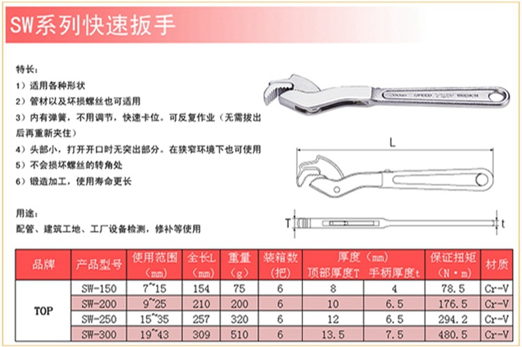 일본 최고 렌치 SW-150/200/250/300 빠른 유니버설 렌치