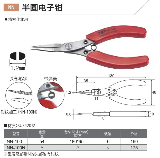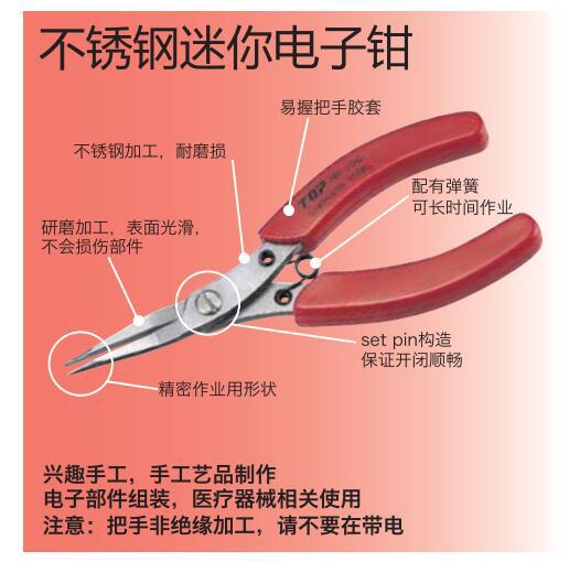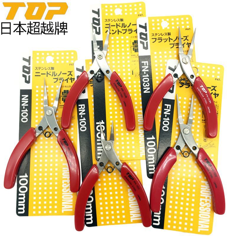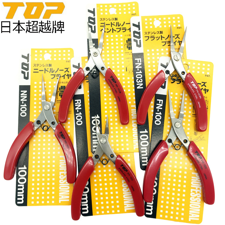 일본 TOP 스테인레스 스틸 바늘 코 펜치 둥근 코 펜치 곡선 코 펜치 이빨없는 편평한 코 펜치 NN/RN-100/FN-103N스토어 가기