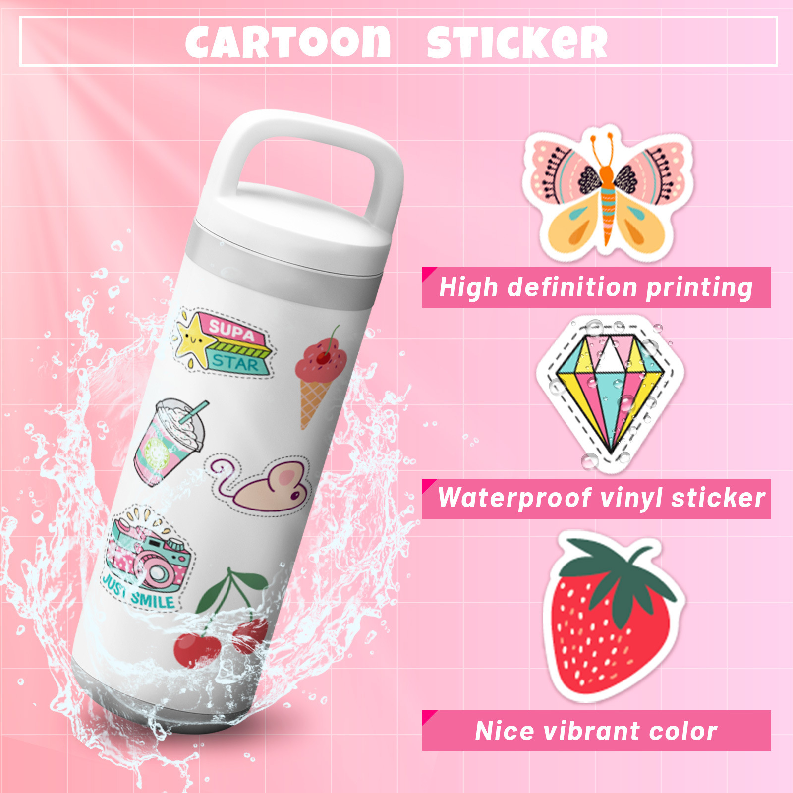 100 스몰 사이즈 4cm 작은 신선한 카메라 스티커 아마존 이베이 소녀 라인 컴퓨터 방수 물병 스티커