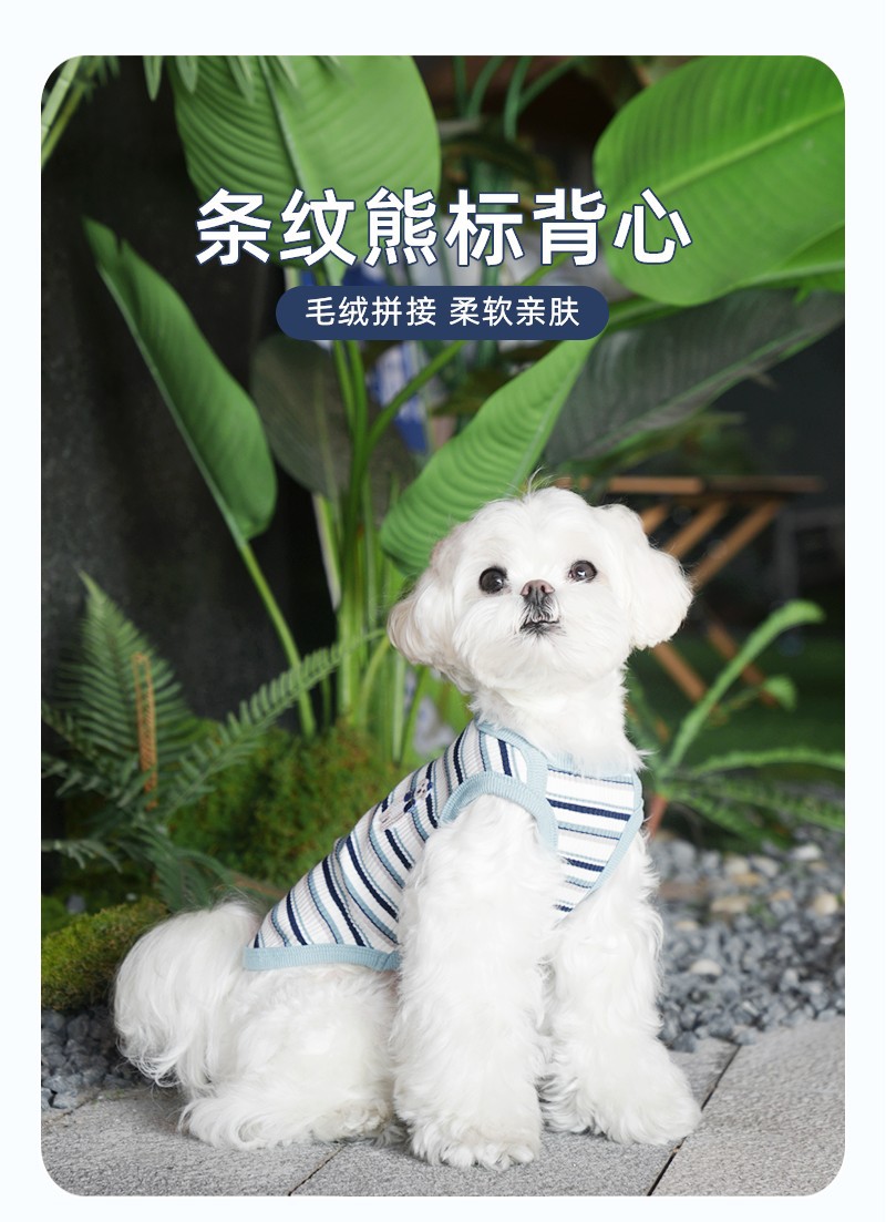 강아지 여름 옷은 곰 테디 봄과 여름 얇은 만화 귀여운 줄무늬 곰 작은 개 조끼보다 낫다스토어 가기