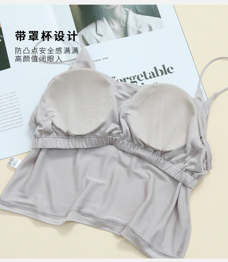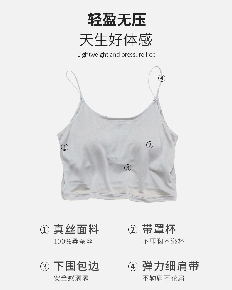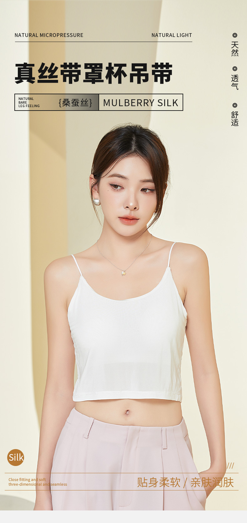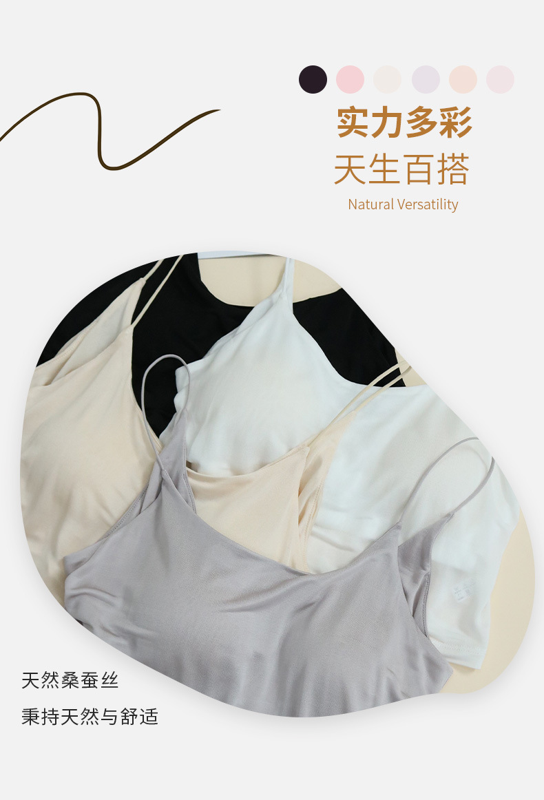 하오상위안 실크 슬립탑 여성용 브라프리 패드 내장 속옷 베이스레이어 실크 속옷 5221