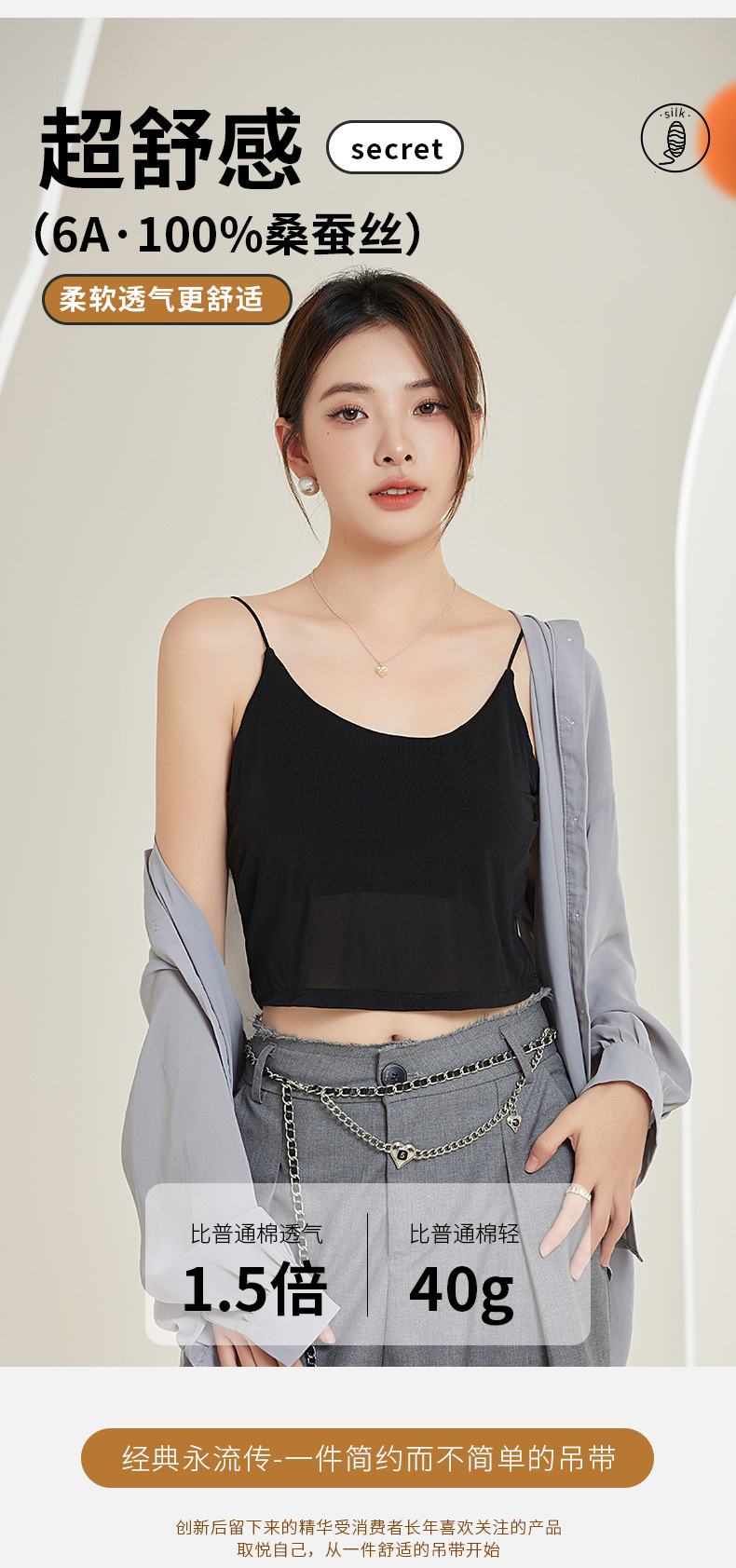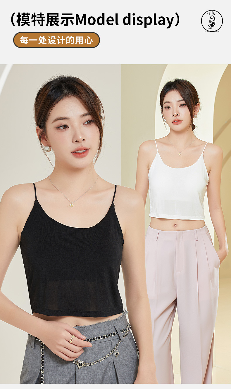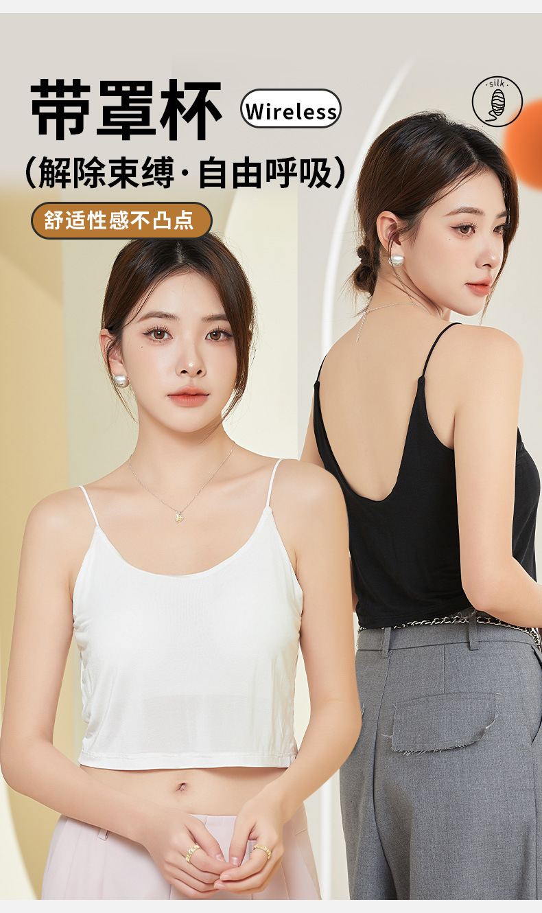 하오상위안 실크 슬립탑 여성용 브라프리 패드 내장 속옷 베이스레이어 실크 속옷 5221