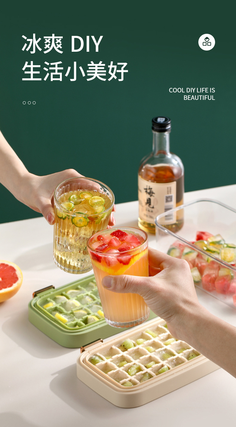 파소라 아이스 큐브 아이스 큐브 금형 가정용 아이스 박스 프레스 유형 대용량 냉장고 냉동 아이스 큐브 보관 상자 뚜껑스토어 가기