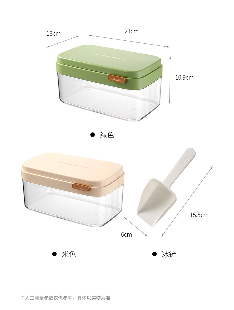 商品材质:冰格、冰铲PP(聚丙烯),盖子、中间层ABS(丙烯腈-丁二烯-苯乙烯),冰盒PET(聚对苯二甲酸乙二醇酯)