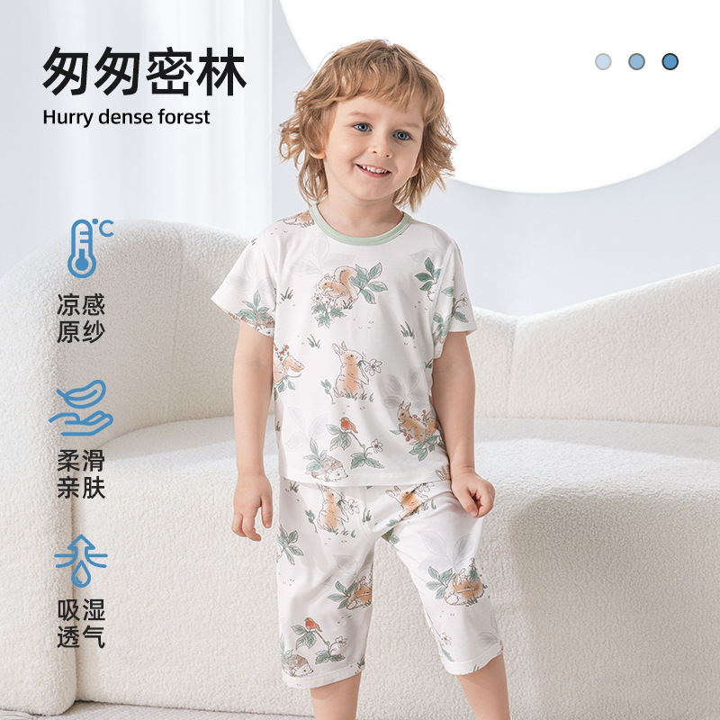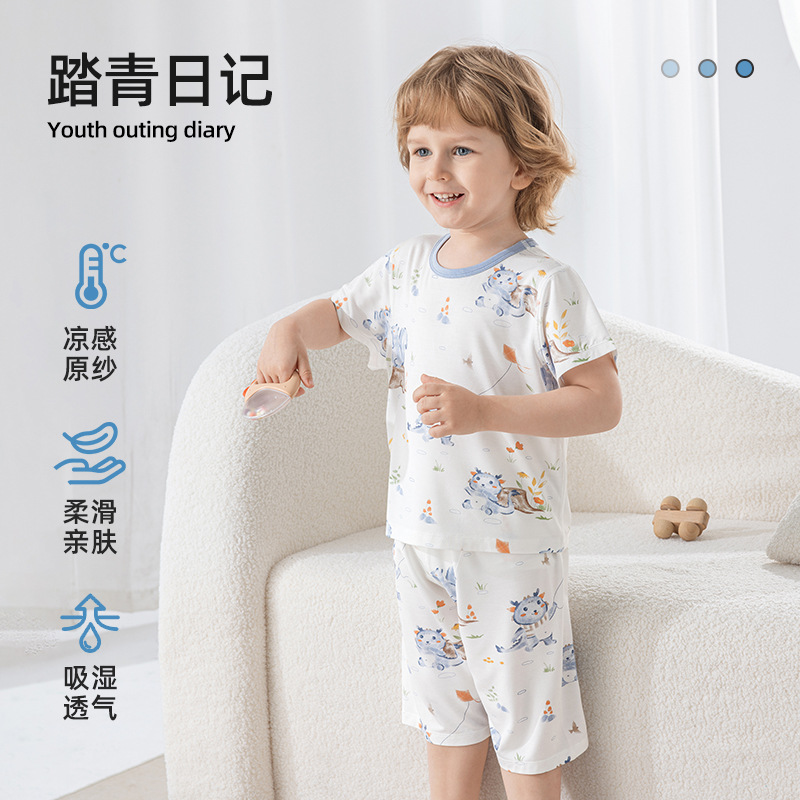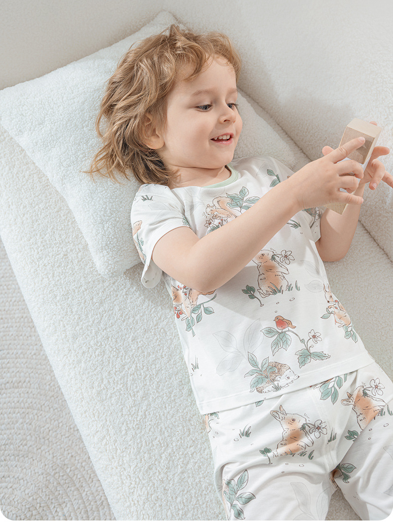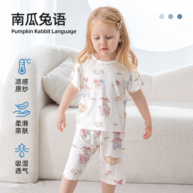 베이티스 여아 잠옷 봄 가을 2025 신상 남아용 얇은 옷 아동용 반팔 유코스 홈웨어