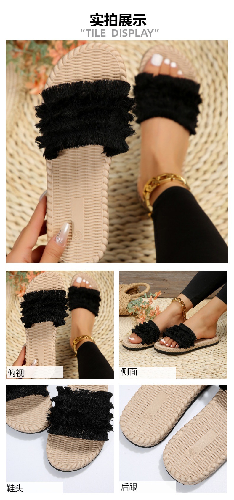 새로운 보헤미안 빅 헤드 슬리퍼 여성 여름 편안한 EVA 비치 샌들 Tassels Open Toe Flat Sandals
