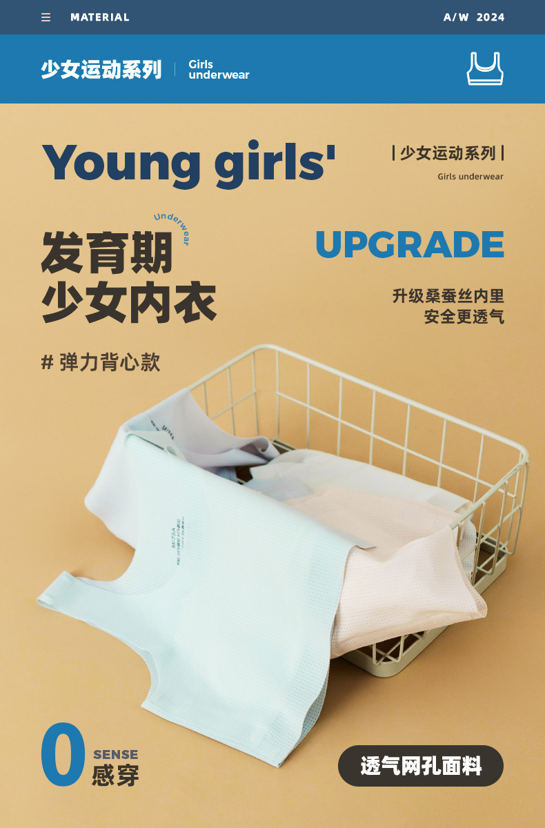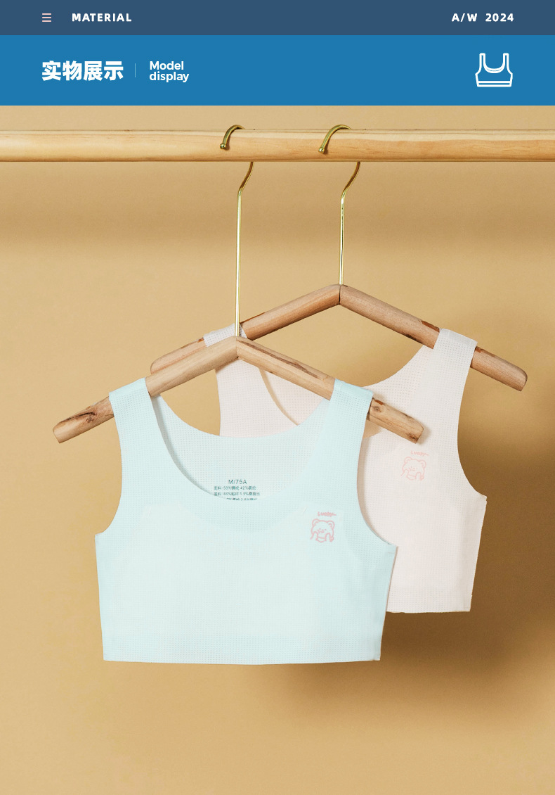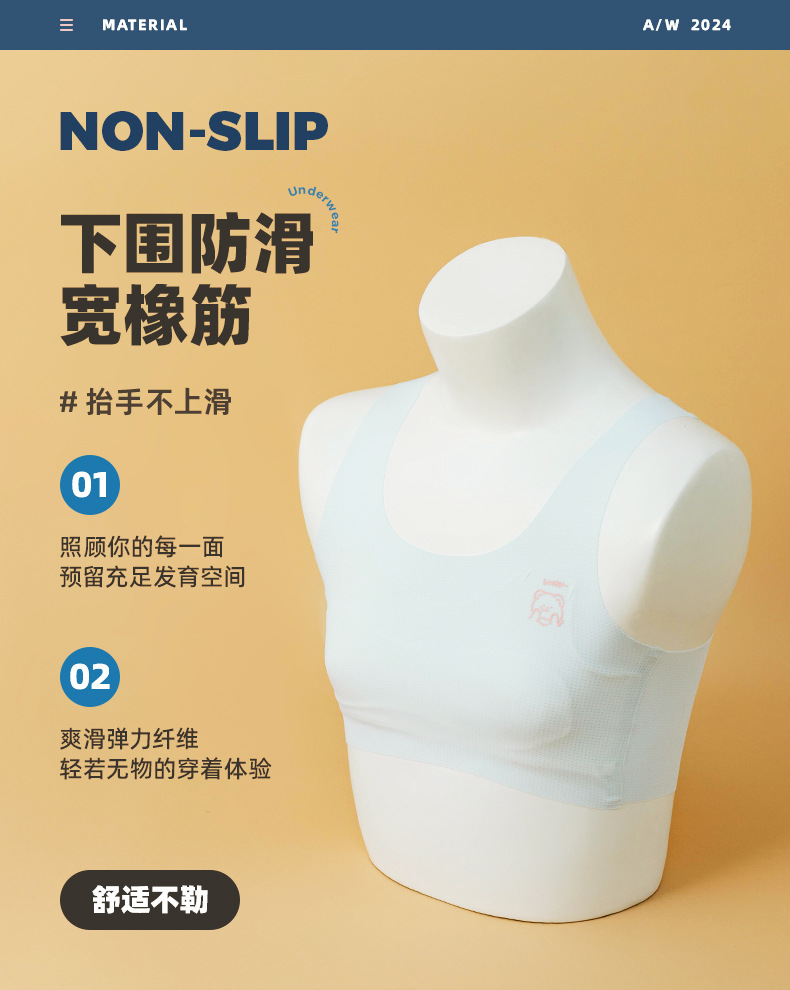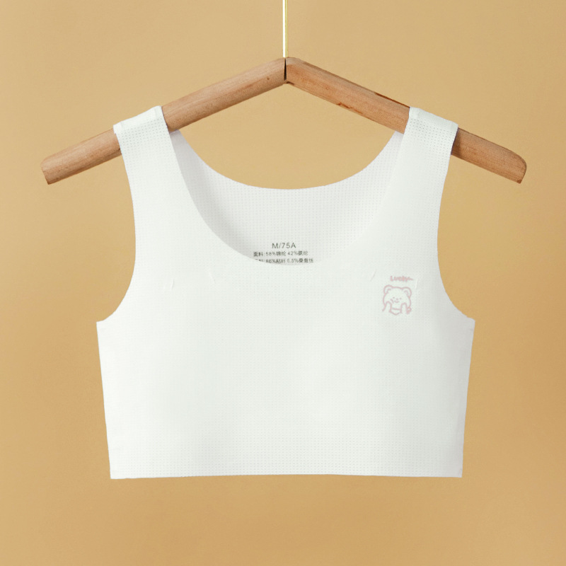 뽕나무 실크 중대형 아동 발달기 아동용 조끼형 브라, 초등학생 무봉제 브라, 여아 튜브탑 브라, 10대 속옷스토어 가기