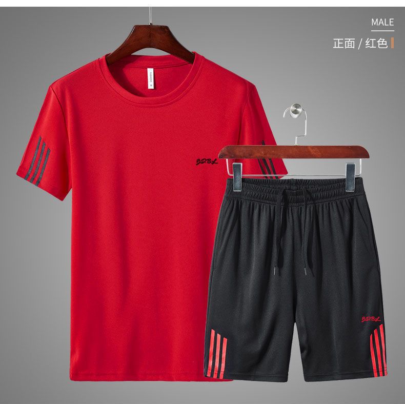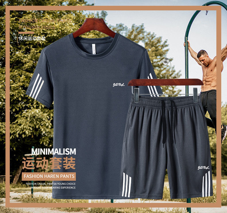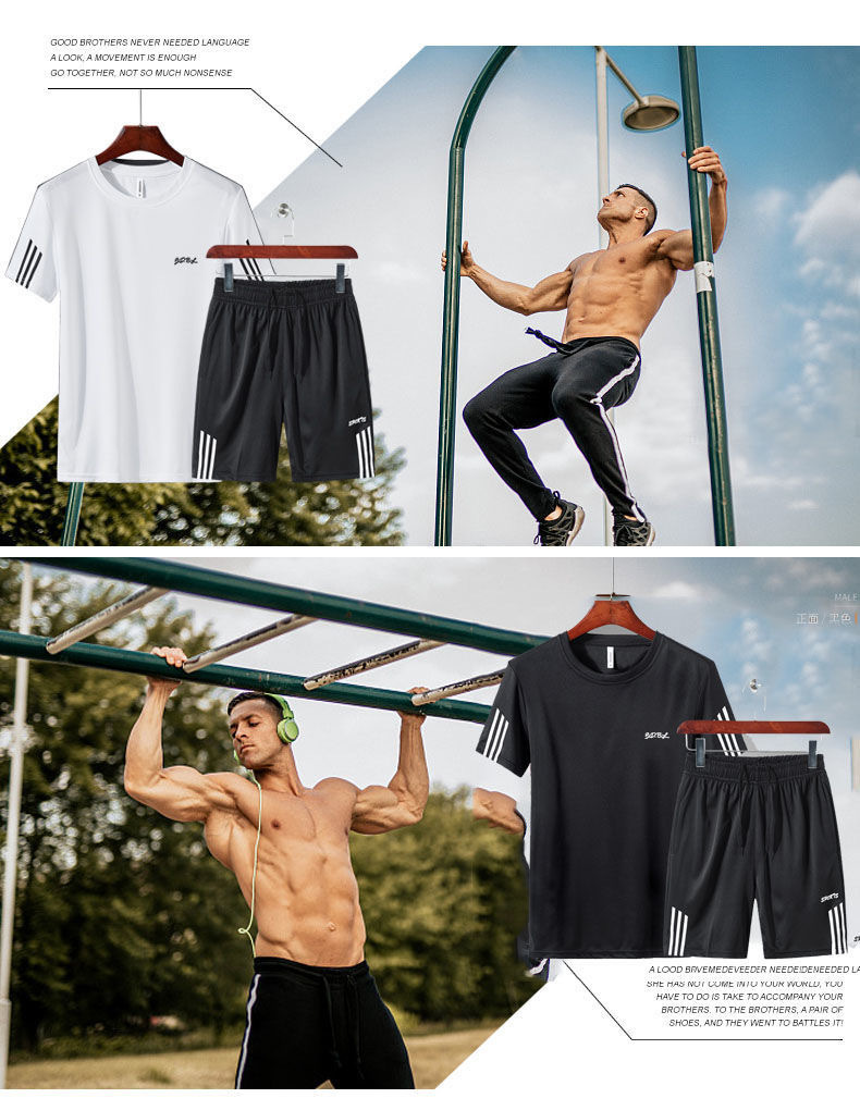 여름 새로운 스포츠 정장 남성 캐주얼 속건 정장 반바지 반팔 러닝 피트니스 한국 스타일 트렌디 티셔츠 남성용스토어 가기