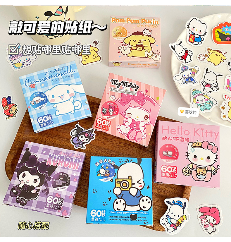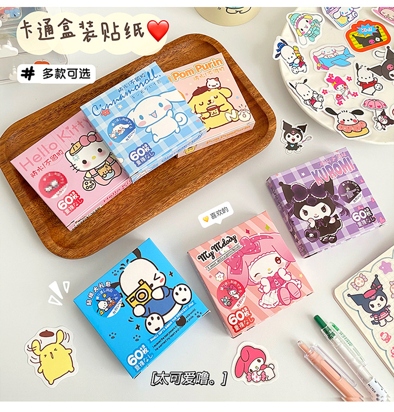 귀여운 만화 작은 스티커 창조적 인 DIY 높은 색상 가치 손 계정 스티커 소녀 심장 문구 장식 스티커 60 조각