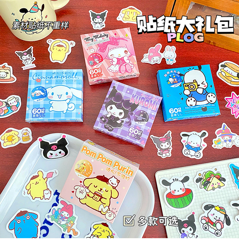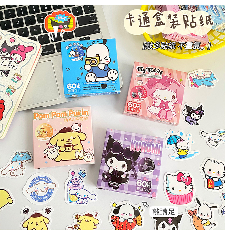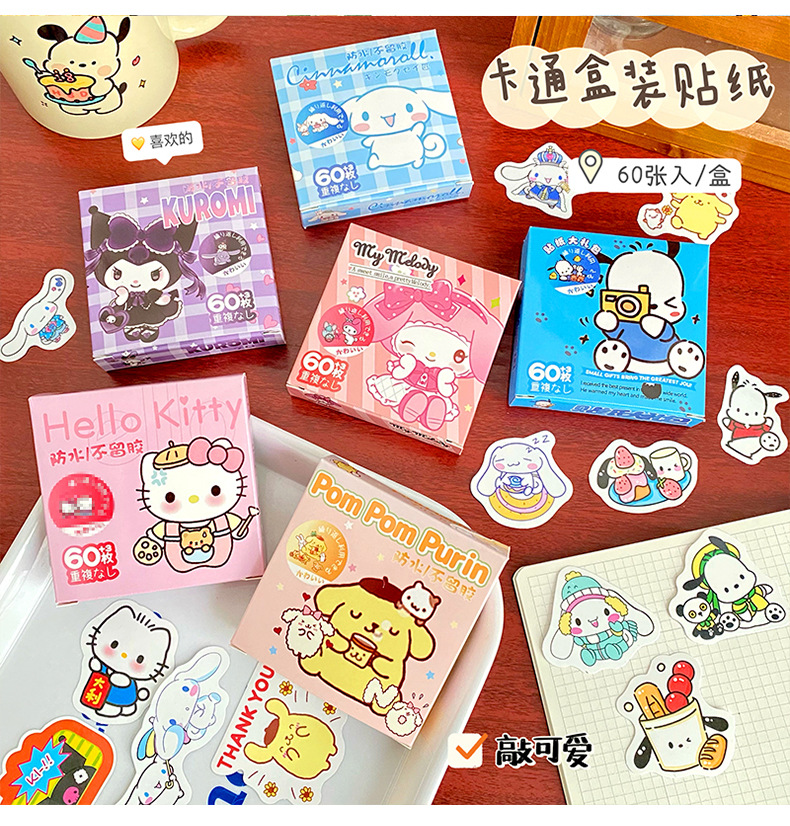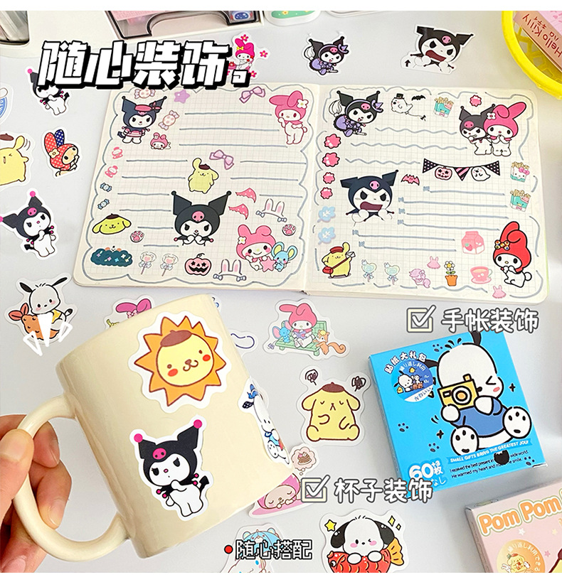 귀여운 만화 작은 스티커 창조적 인 DIY 높은 색상 가치 손 계정 스티커 소녀 심장 문구 장식 스티커 60 조각스토어 가기