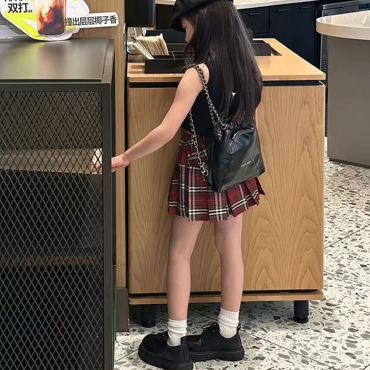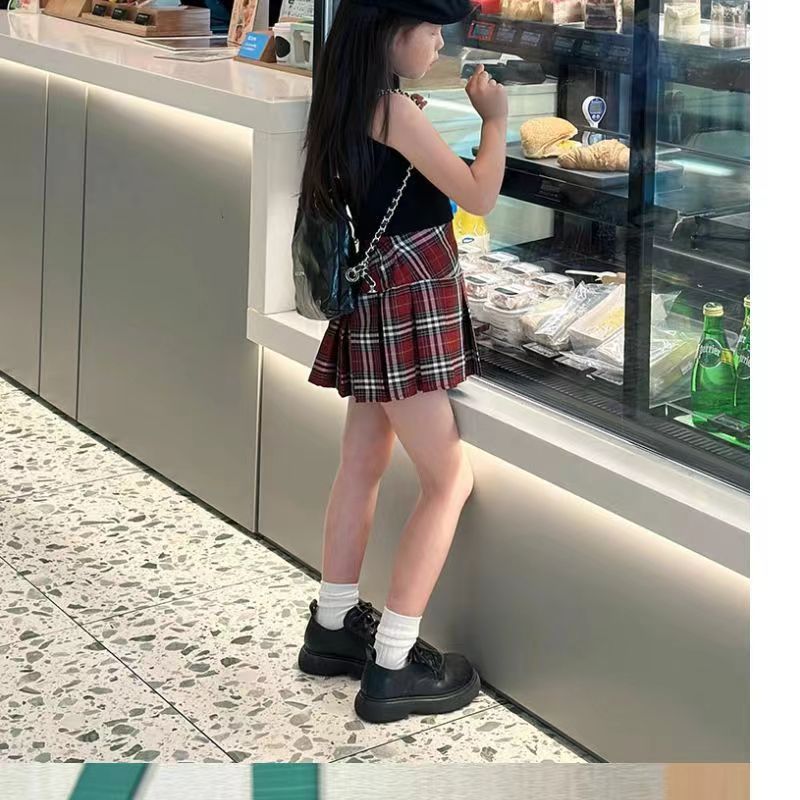 2024 여자 여름 세트 여자 세련된 블랙 조끼 최고 어린이 유행 우아한 빨간 치마 세트스토어 가기