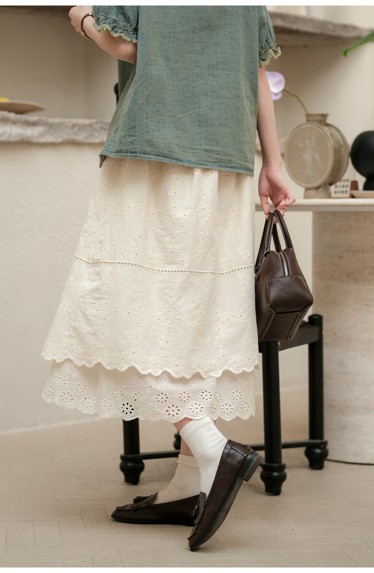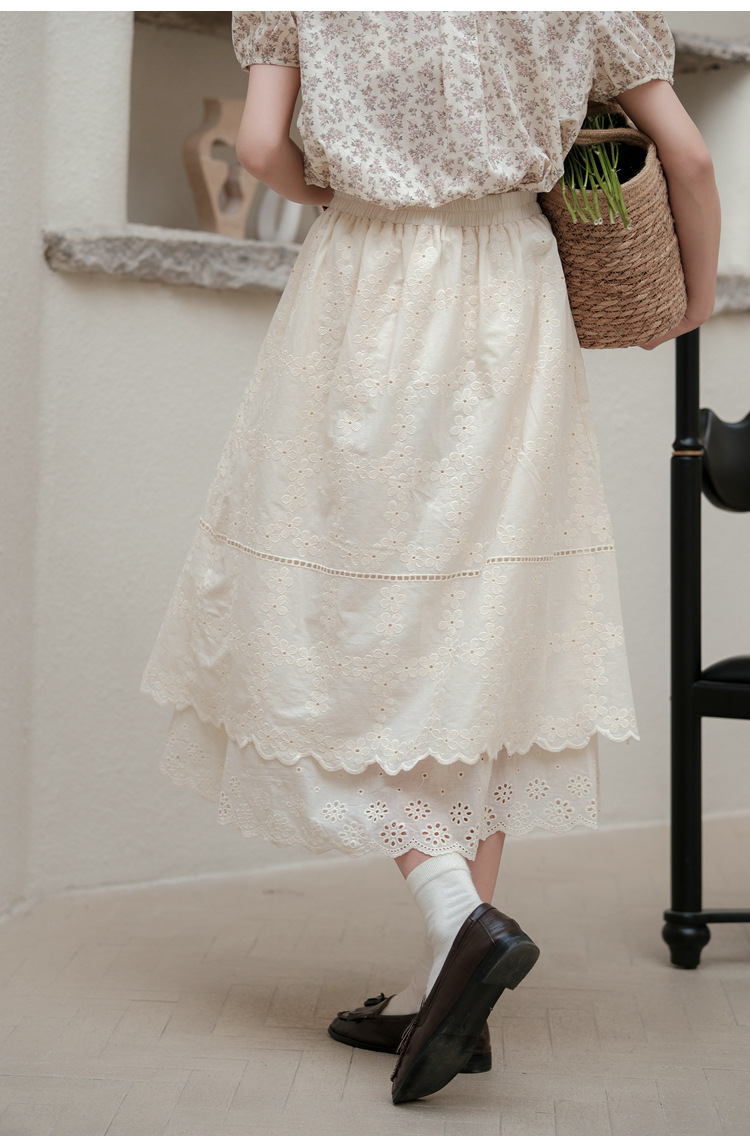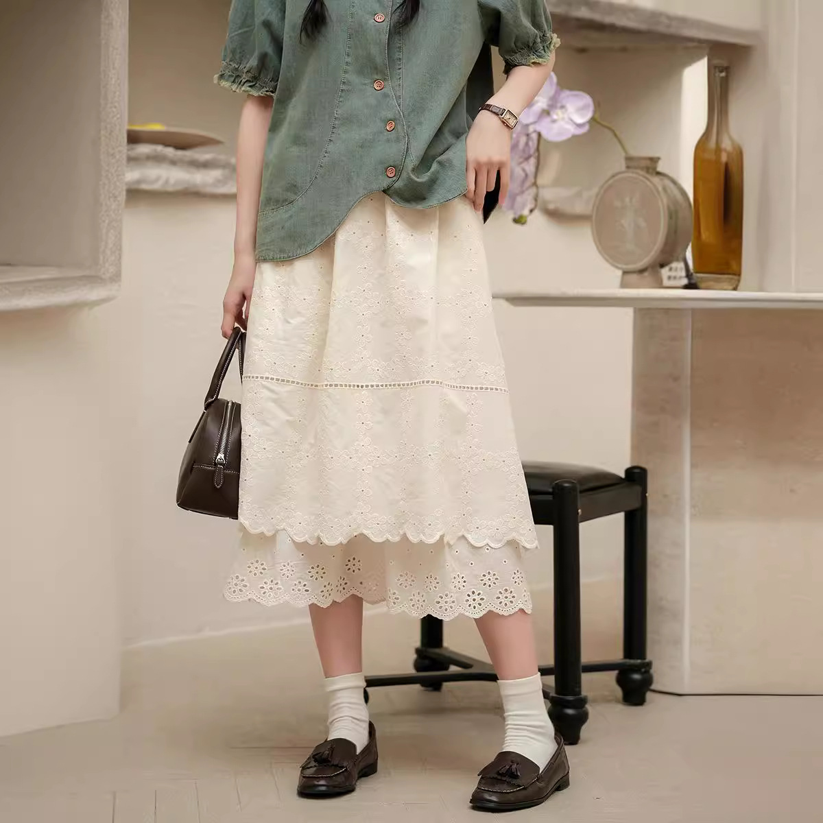 2024 년 여름 새로운 도착 프랑스 스타일 예술적 허리 레이스 레이스 더블 레이어 디자인 긴 원피스스토어 가기