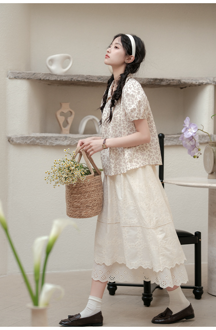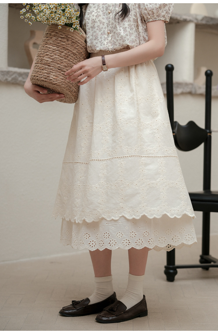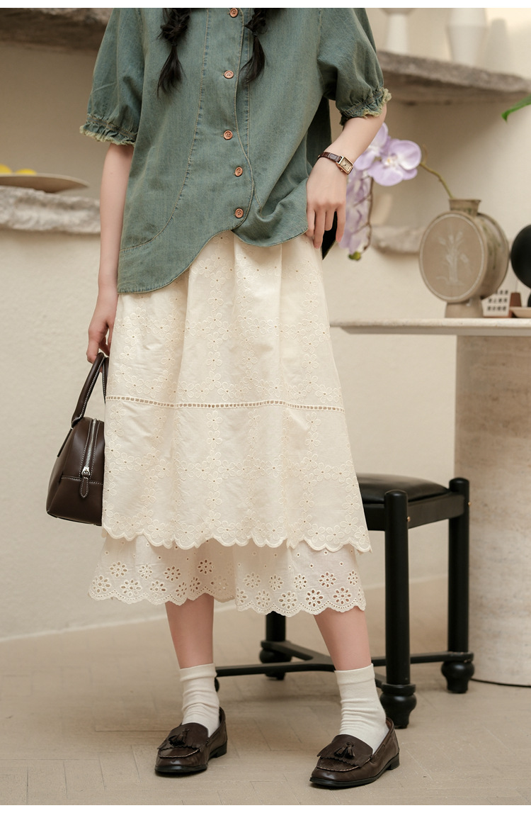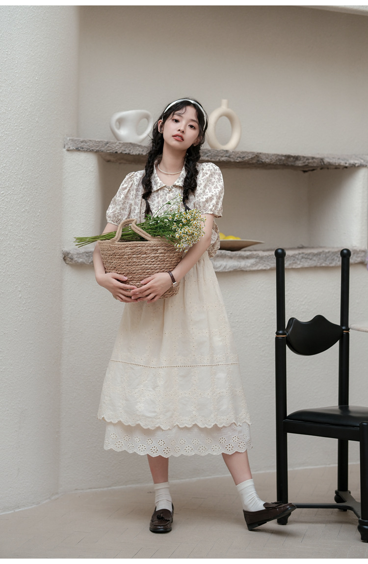 2024 년 여름 새로운 도착 프랑스 스타일 예술적 허리 레이스 레이스 더블 레이어 디자인 긴 원피스스토어 가기