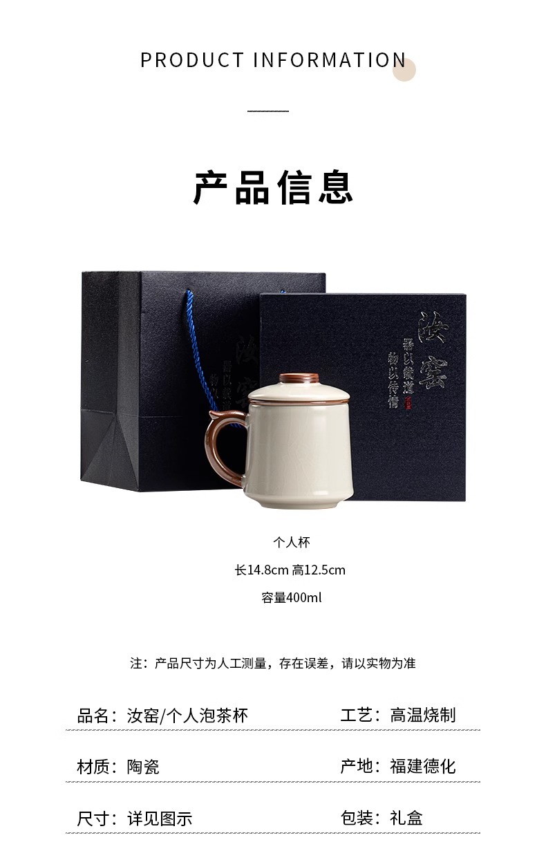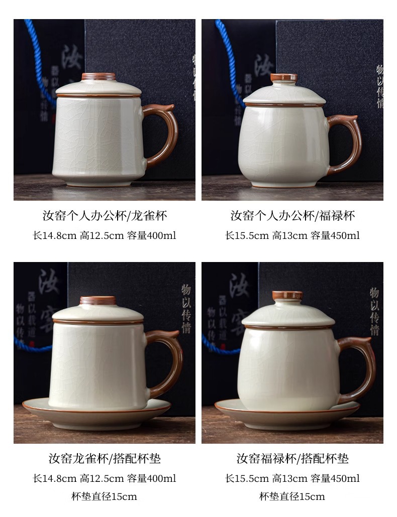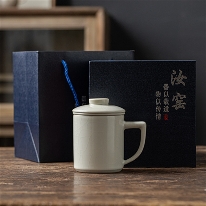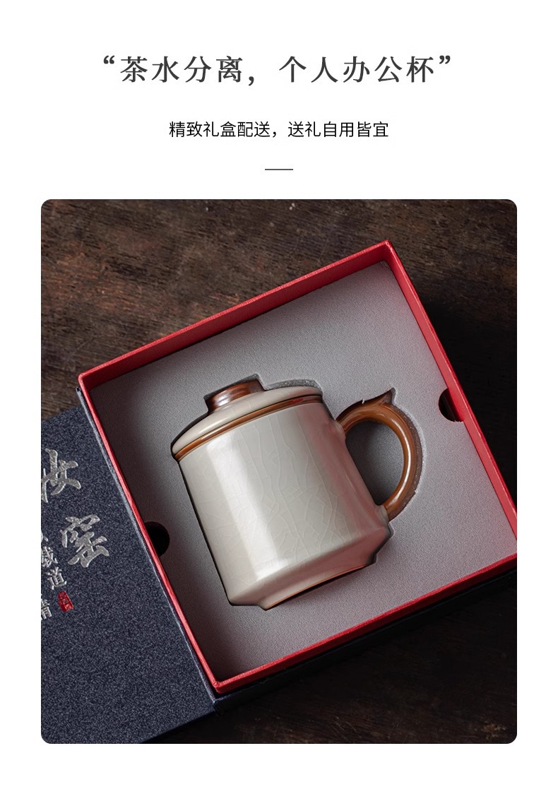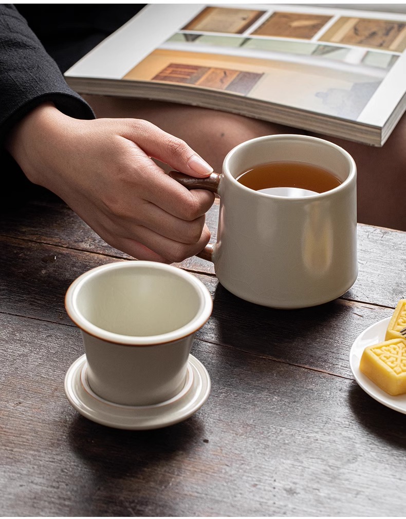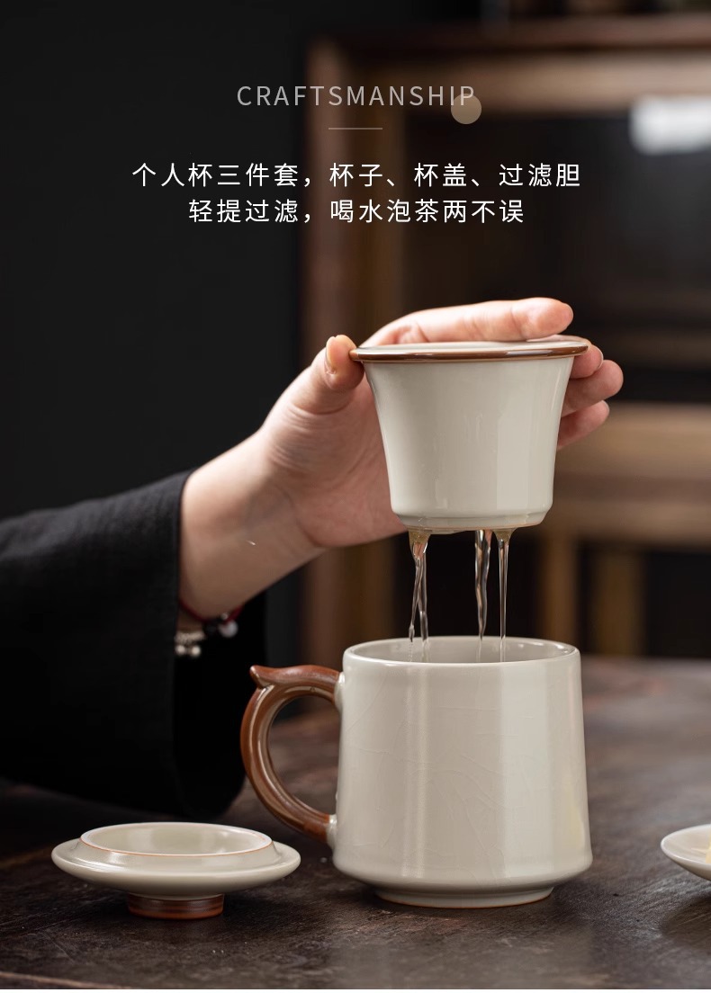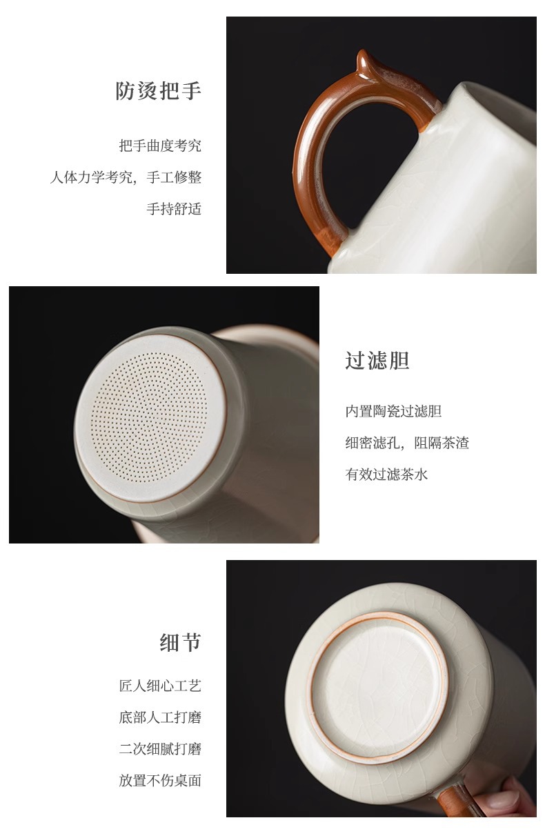 Ru Kiln 머그컵 찻잔 차 컵 대용량 세라믹 차 물 분리 필터 티 컵 사무실 개인 컵