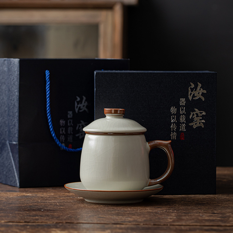 Ru Kiln 머그컵 찻잔 차 컵 대용량 세라믹 차 물 분리 필터 티 컵 사무실 개인 컵스토어 가기