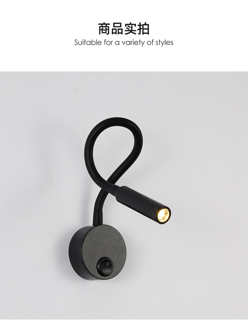 국경 지점 오픈 피팅 라운드 호스 침대 옆 램프 현대적인 간단한 침실 LED 구즈넥 침대 옆 벽 램프 스위치