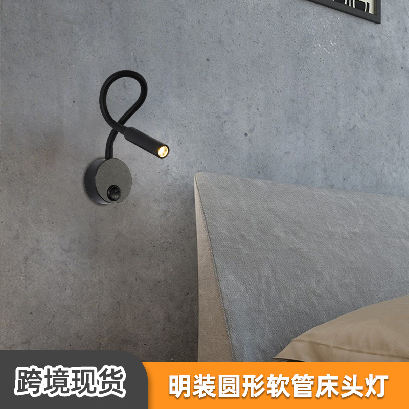 국경 지점 오픈 피팅 라운드 호스 침대 옆 램프 현대적인 간단한 침실 LED 구즈넥 침대 옆 벽 램프 스위치스토어 가기
