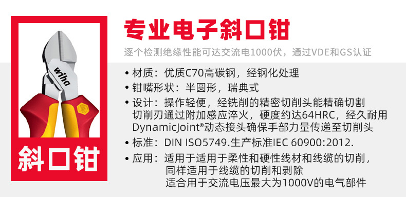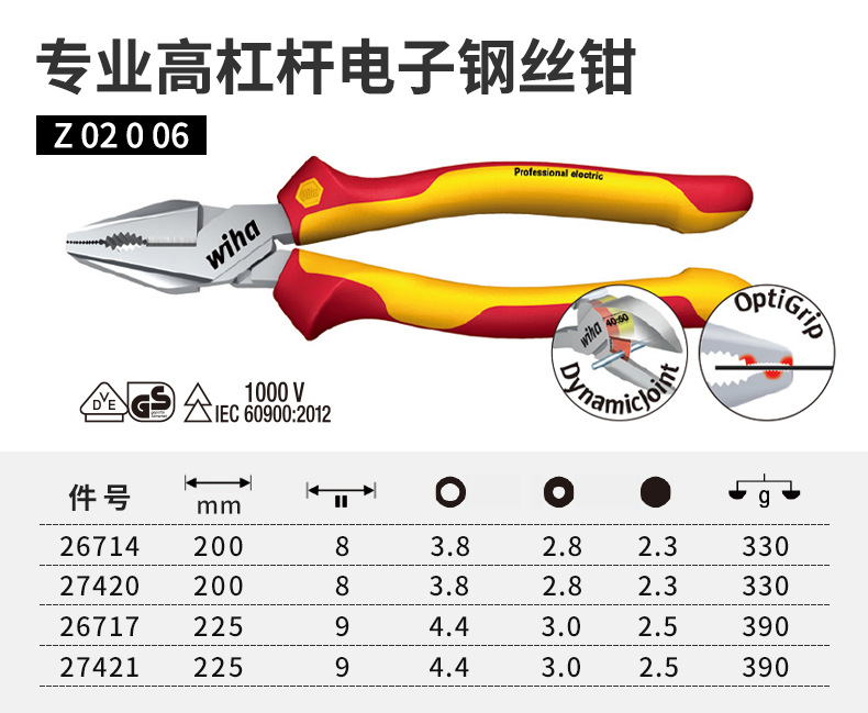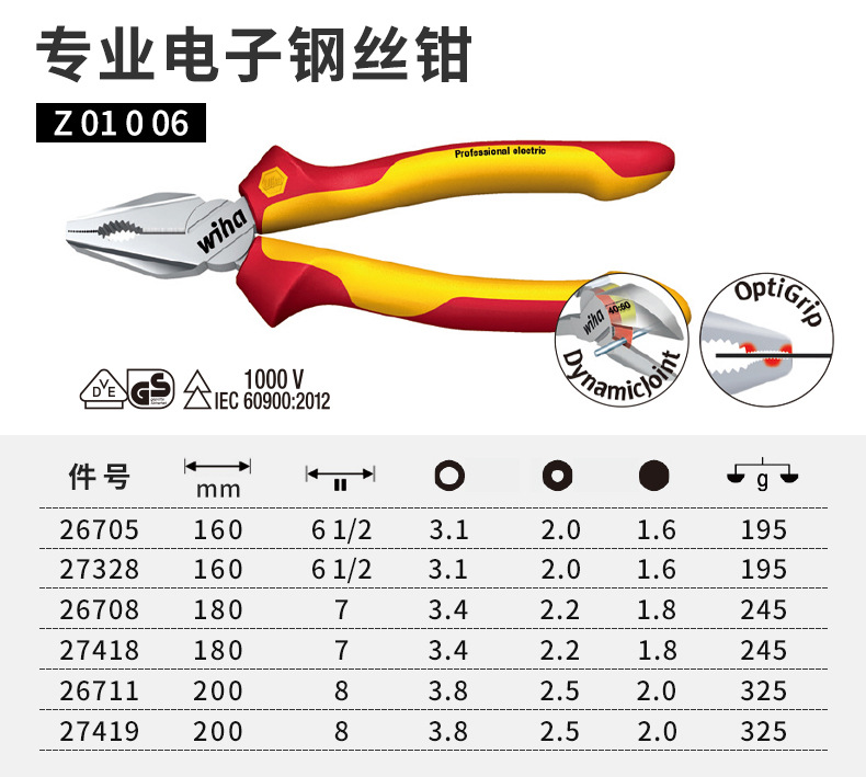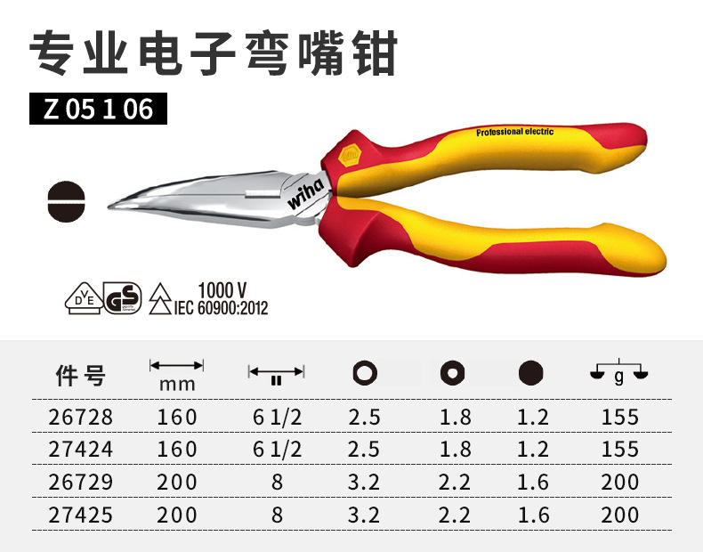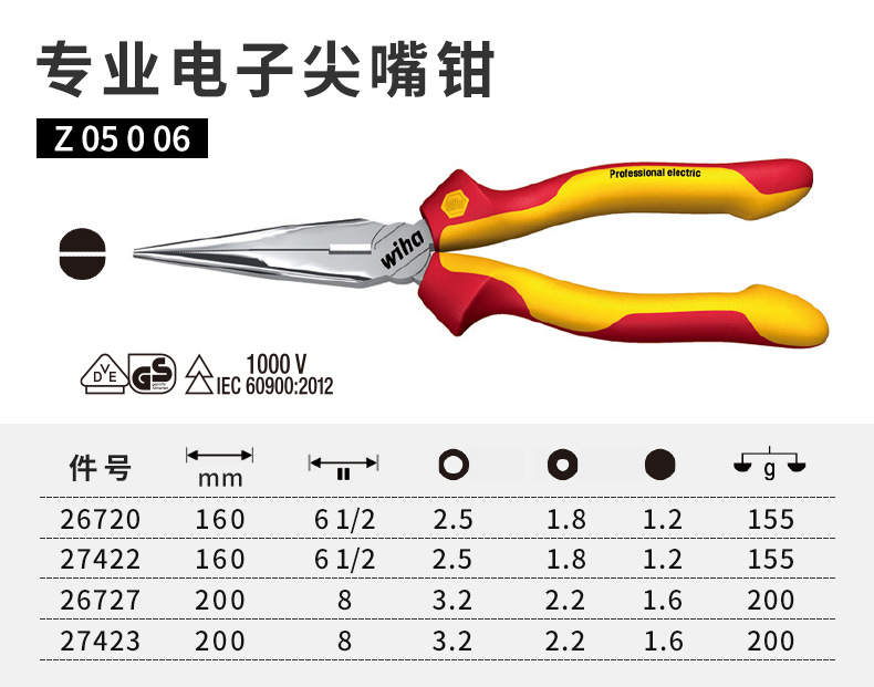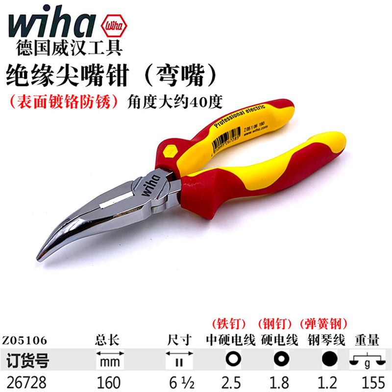 독일 wiha Weihan 절연 펜치 수입 고전압 전기 특수 뾰족한 코 펜치 대각선 펜치 와이어 펜치 도구