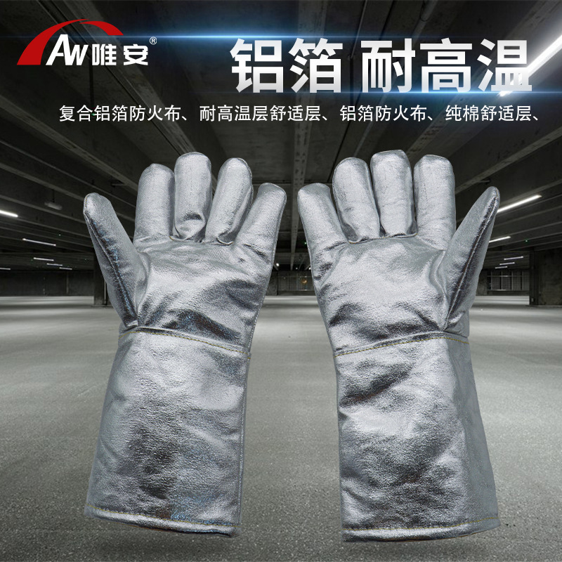 Weian 5 손가락 알루미늄 호일 고온 내성 장갑 1000 도 복사 열 보일러 용접기 제련 강철 보호 장갑