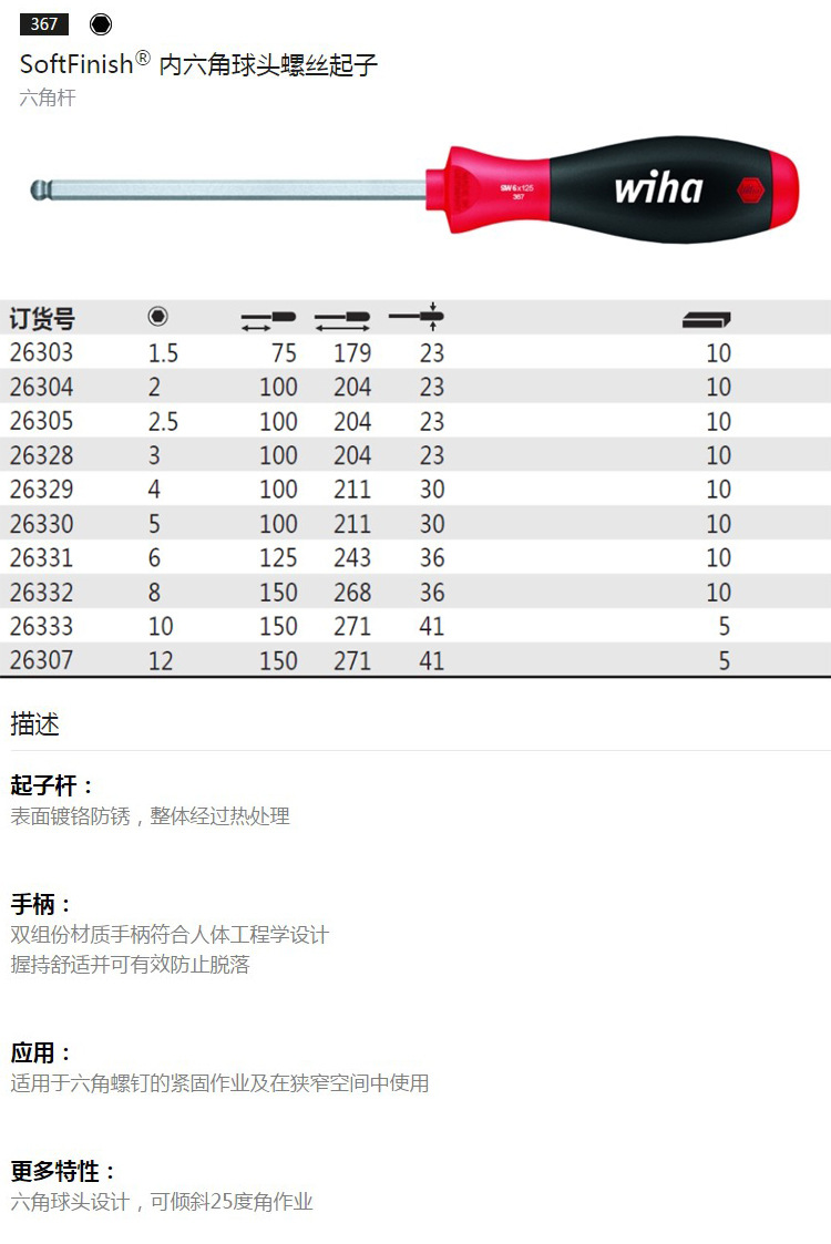 새로운 독일 WIHA 볼 헤드 육각형 스크루 드라이버 수입 라운드 헤드 육각형 핸드 배치 52346mm