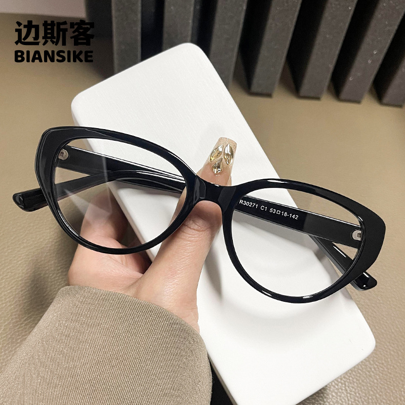 TR30271 한국식 여성 고양이 눈 작은 프레임 둥근 얼굴 인터넷 연예인 사진 슈퍼 쿨인 바람 안경은 근시로 장착 할 수 있습니다스토어 가기