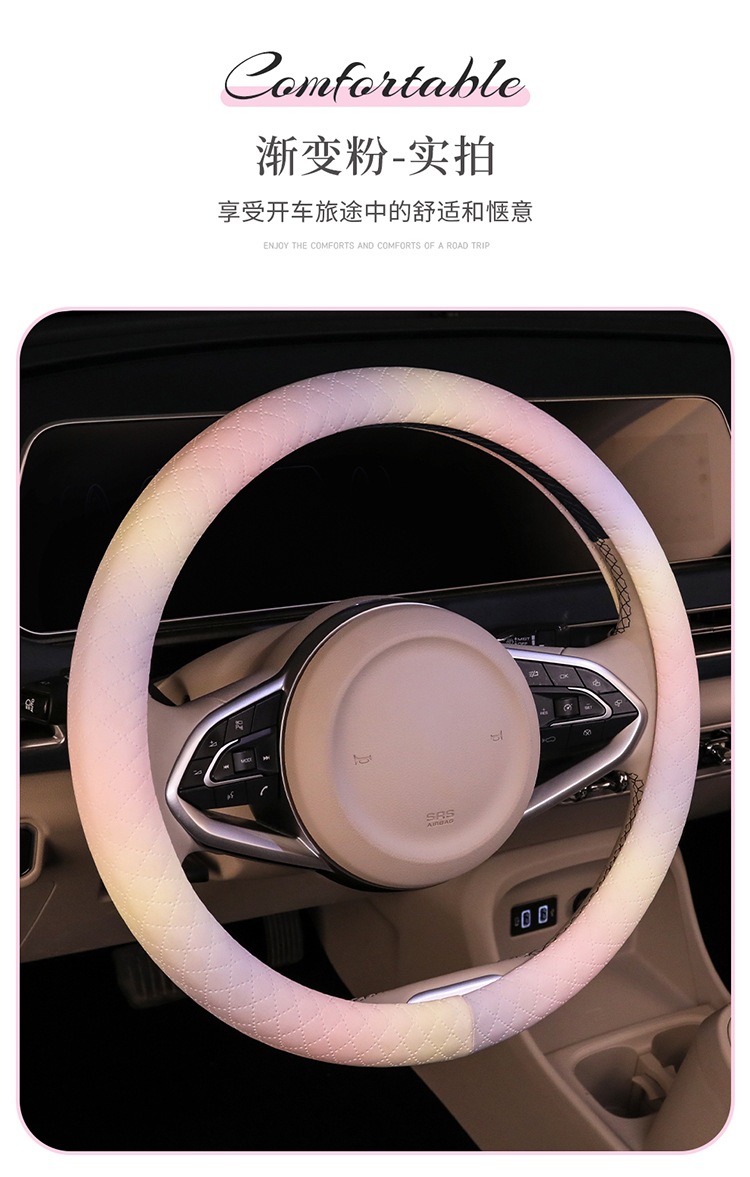 도매 마카롱 자동차 스티어링 휠 커버 다채로운 통기성 사계절 유니버설 인공 가죽 자동차 인테리어 핸들 커버
